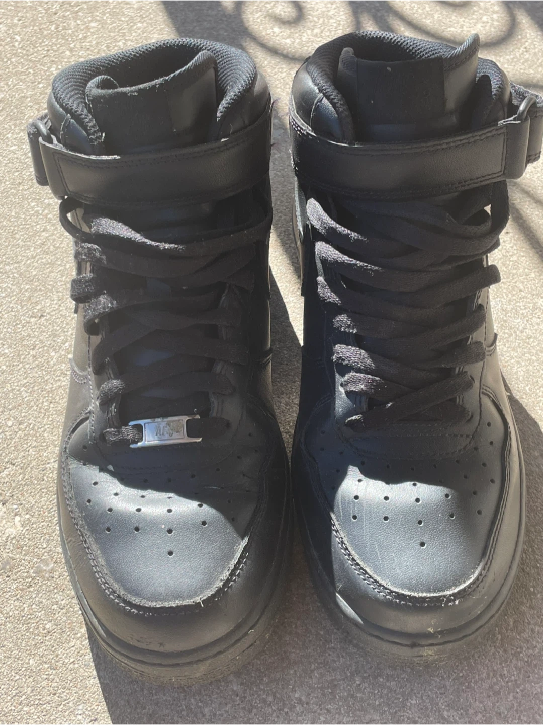 Selling a pair of black Nike Air Force 1 High sneakers. They show some signs of wear as pictured, but still have lots of life left! Classic style and comfortable fit