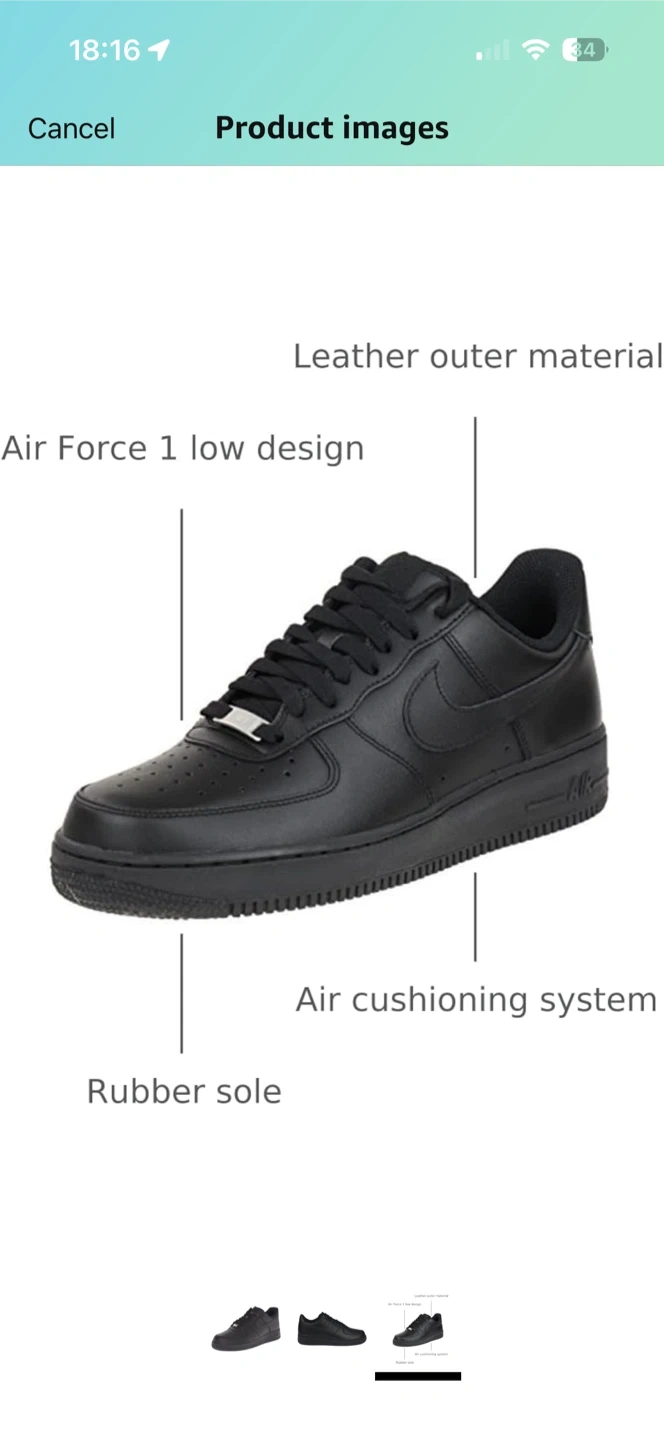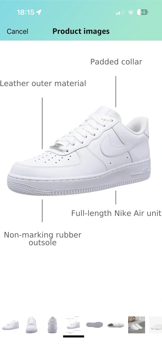 Voici des souliers Nike Air Force 1 Low. Ils sont faits avec un extérieur en cuir, une semelle en caoutchouc et un système d'amorti Air. Le col est rembourré pour plus de confort