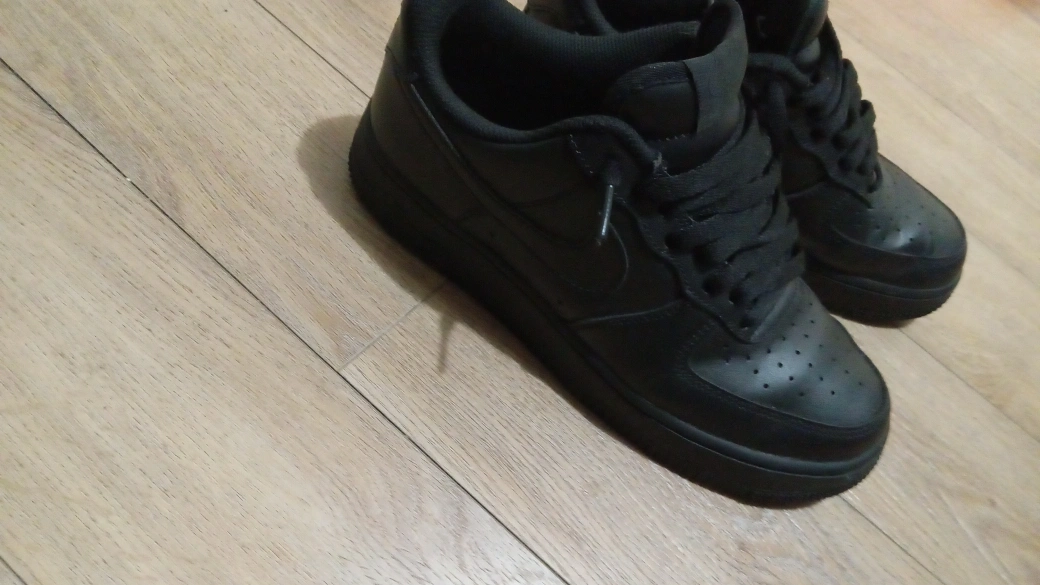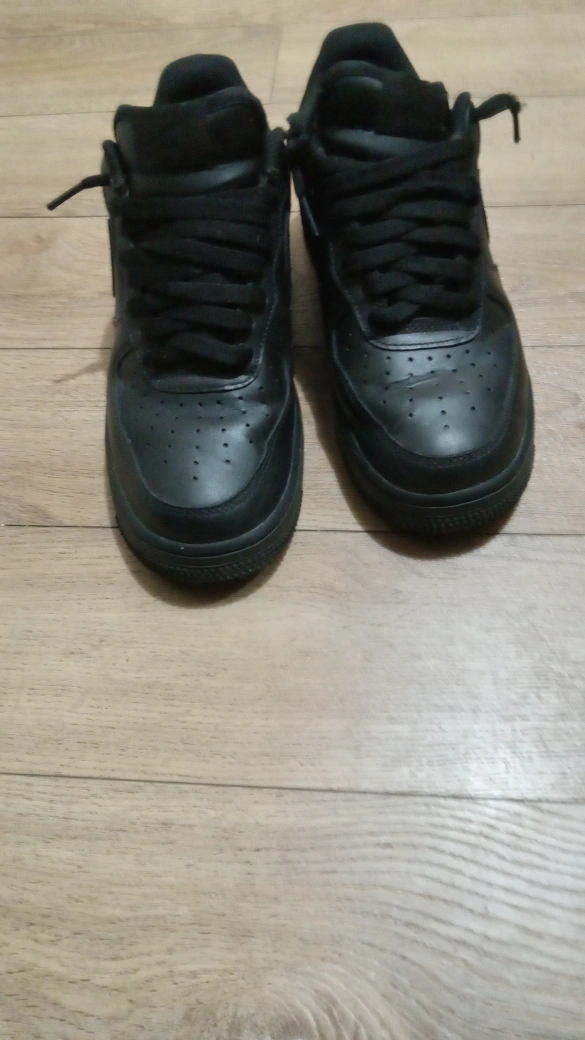 Black leather sneakers. Size 8 or 7. Worn but in good condition.