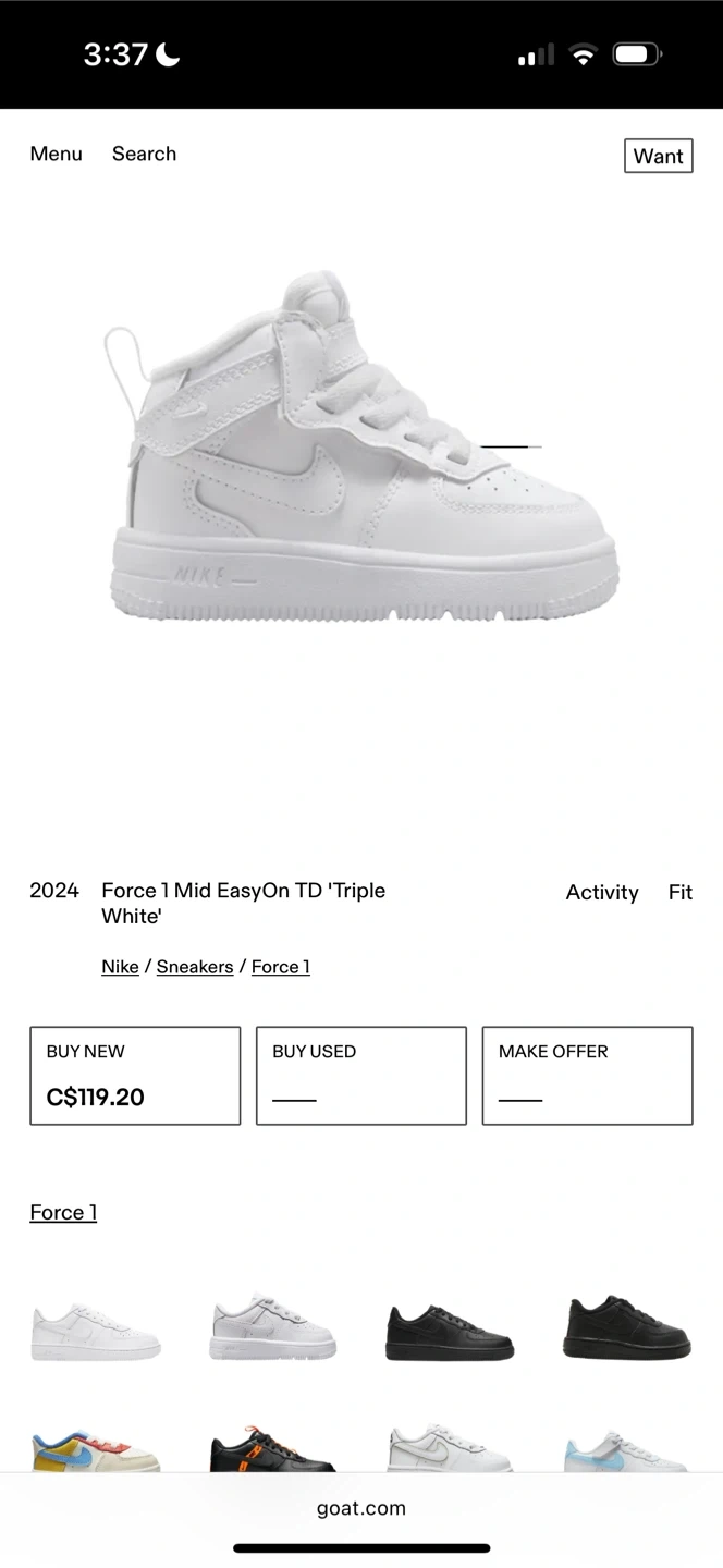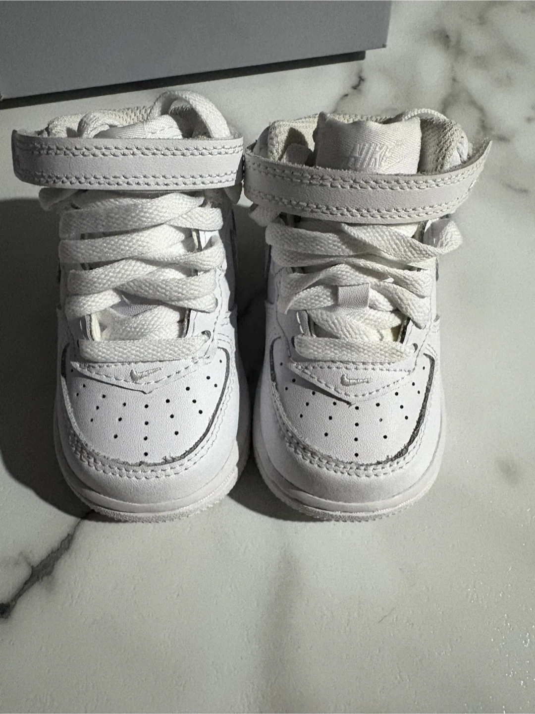 Selling a pair of Nike Force 1 Mid LE (TD) in white. They are a size 3C for toddlers. Comes with the original box! Brand New $60