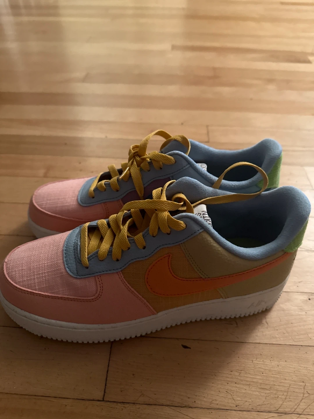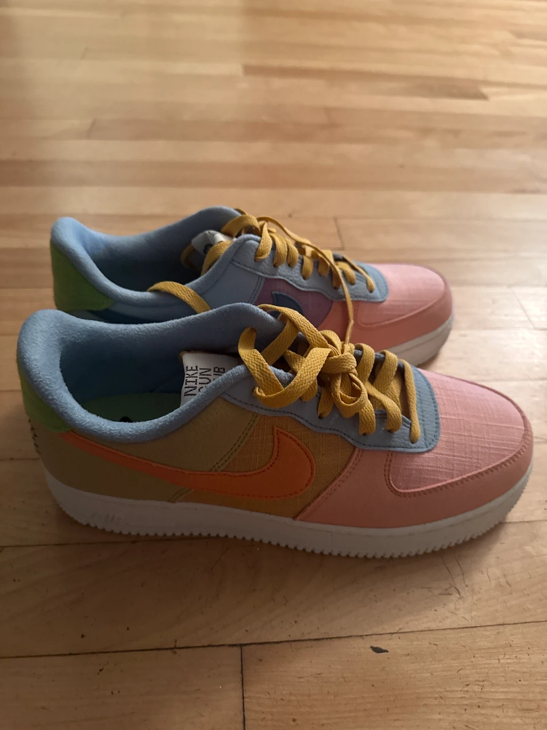 Selling a pair of Nike Air Force 1 Run Club sneakers! They're in great shape and ready for a new home. These sneakers feature a unique colourway and design that will definitely turn heads. Perfect for adding a pop of colour to your outfit! No box but it’s new