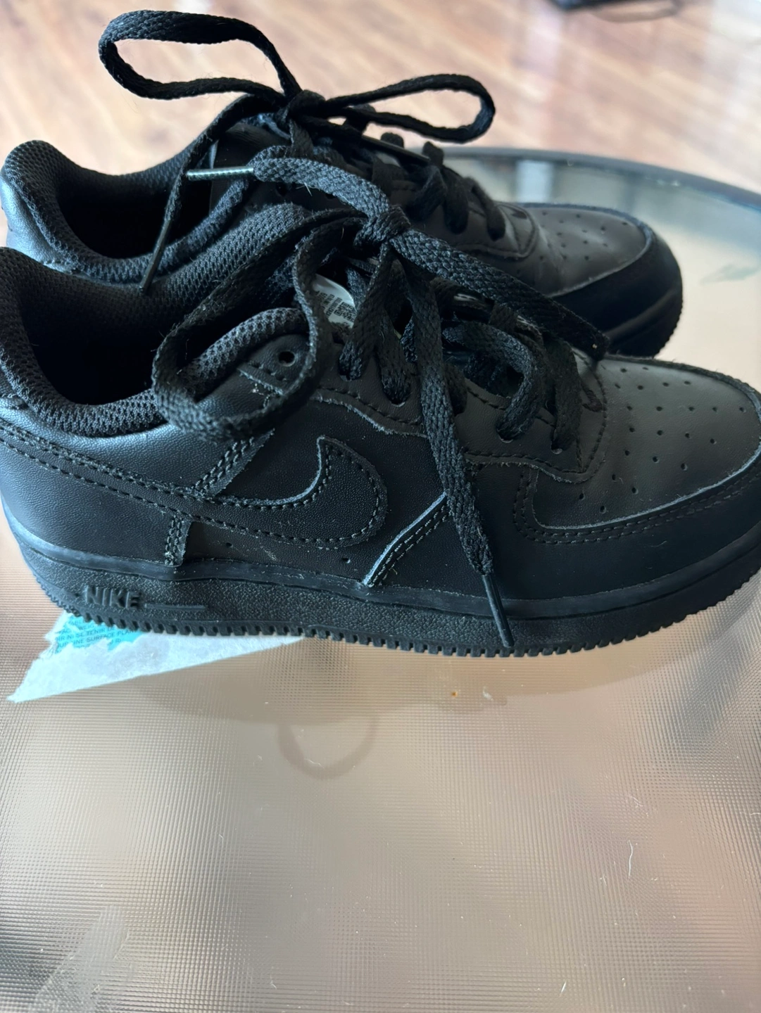 Black Nike Air Force 1 shoes in size 11.5Y. The shoes are in good condition and would be perfect for a child.