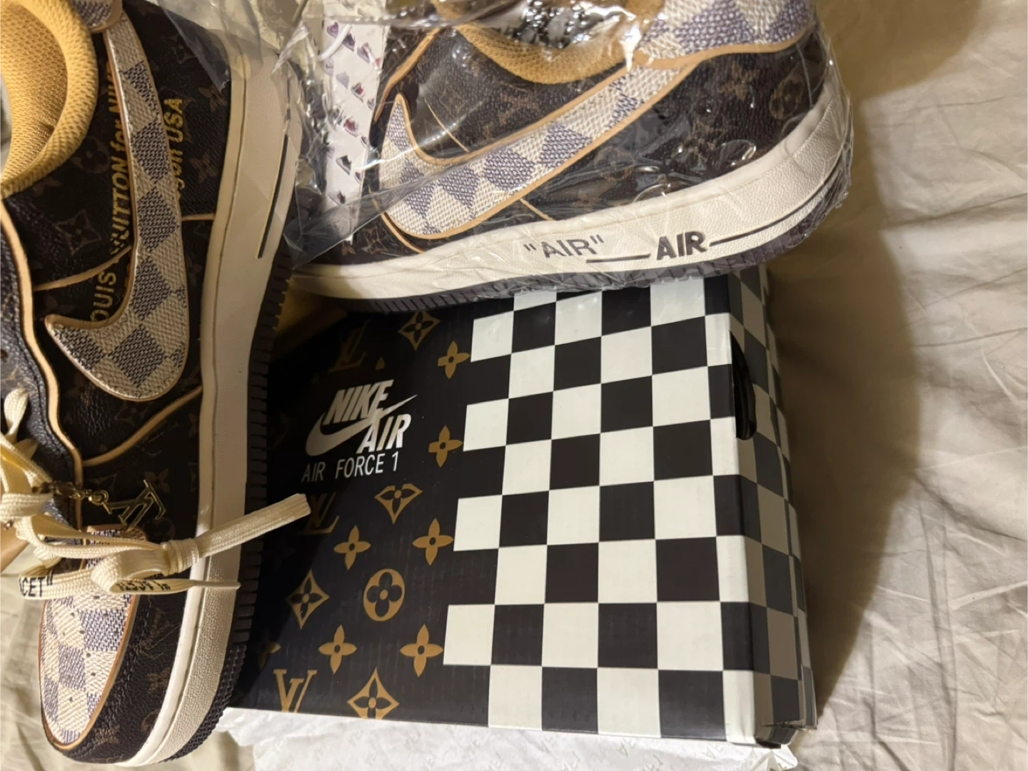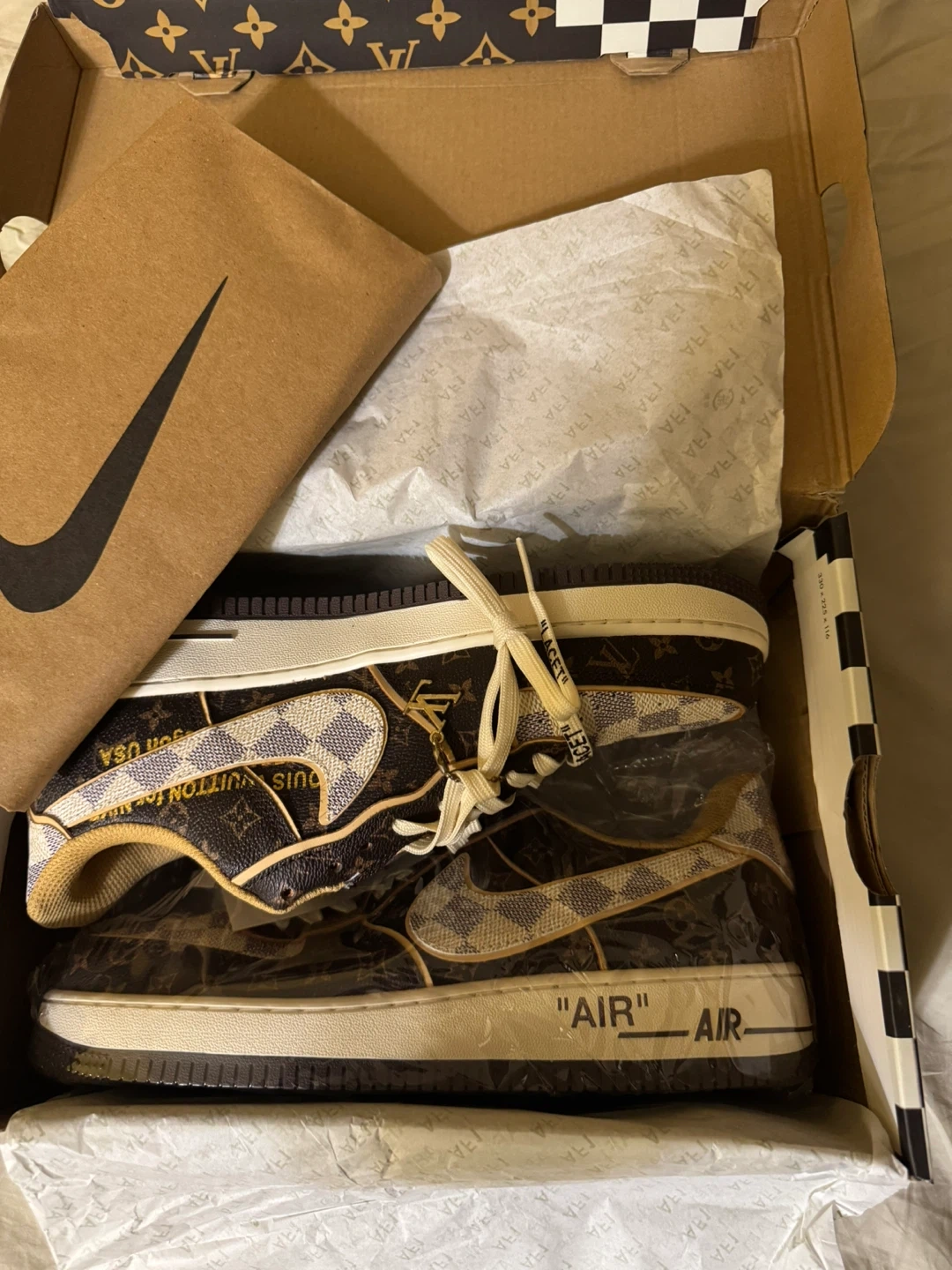 Nike Air Force 1 x Louis Vuitton! These are size 9.5 US and come with the box. Brand New. Untouched