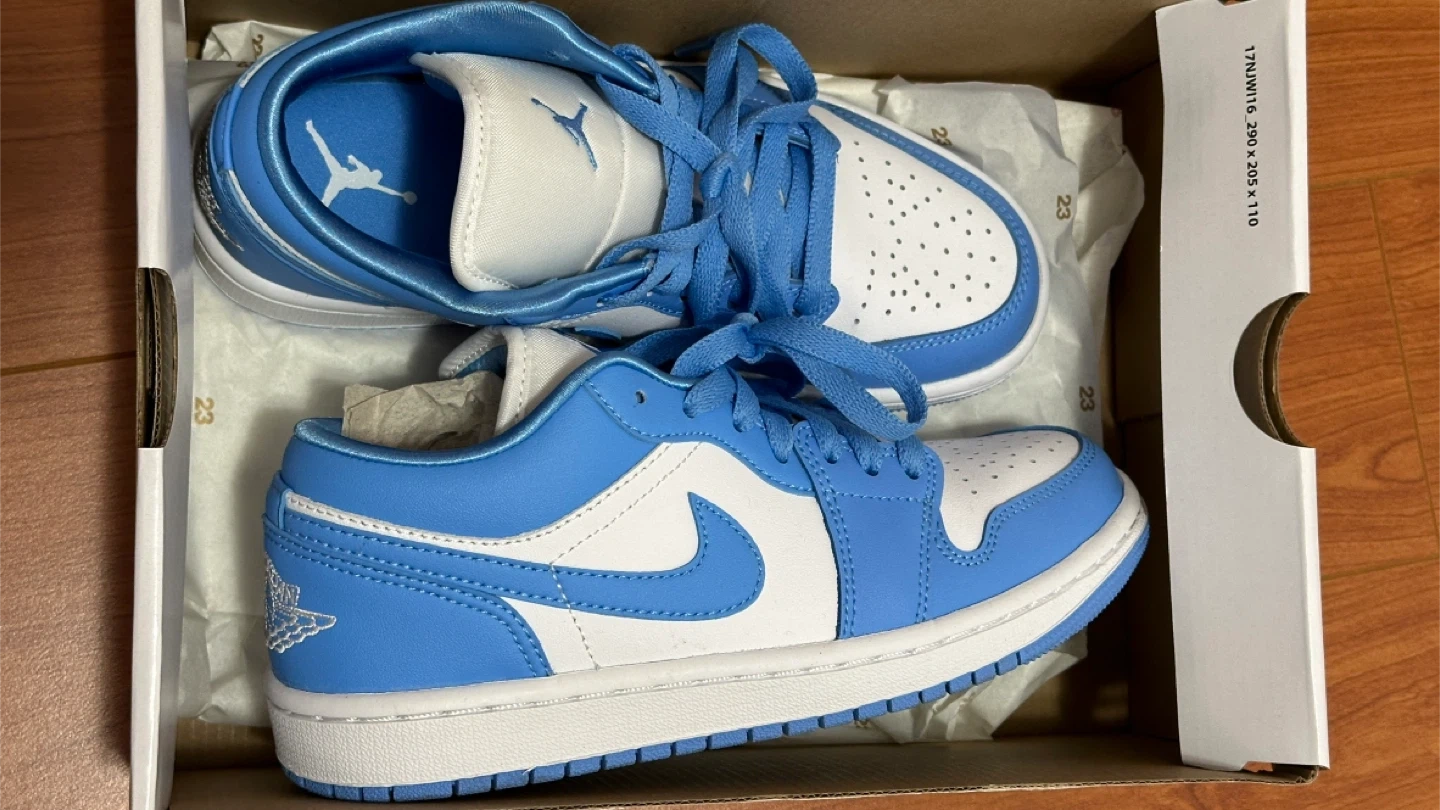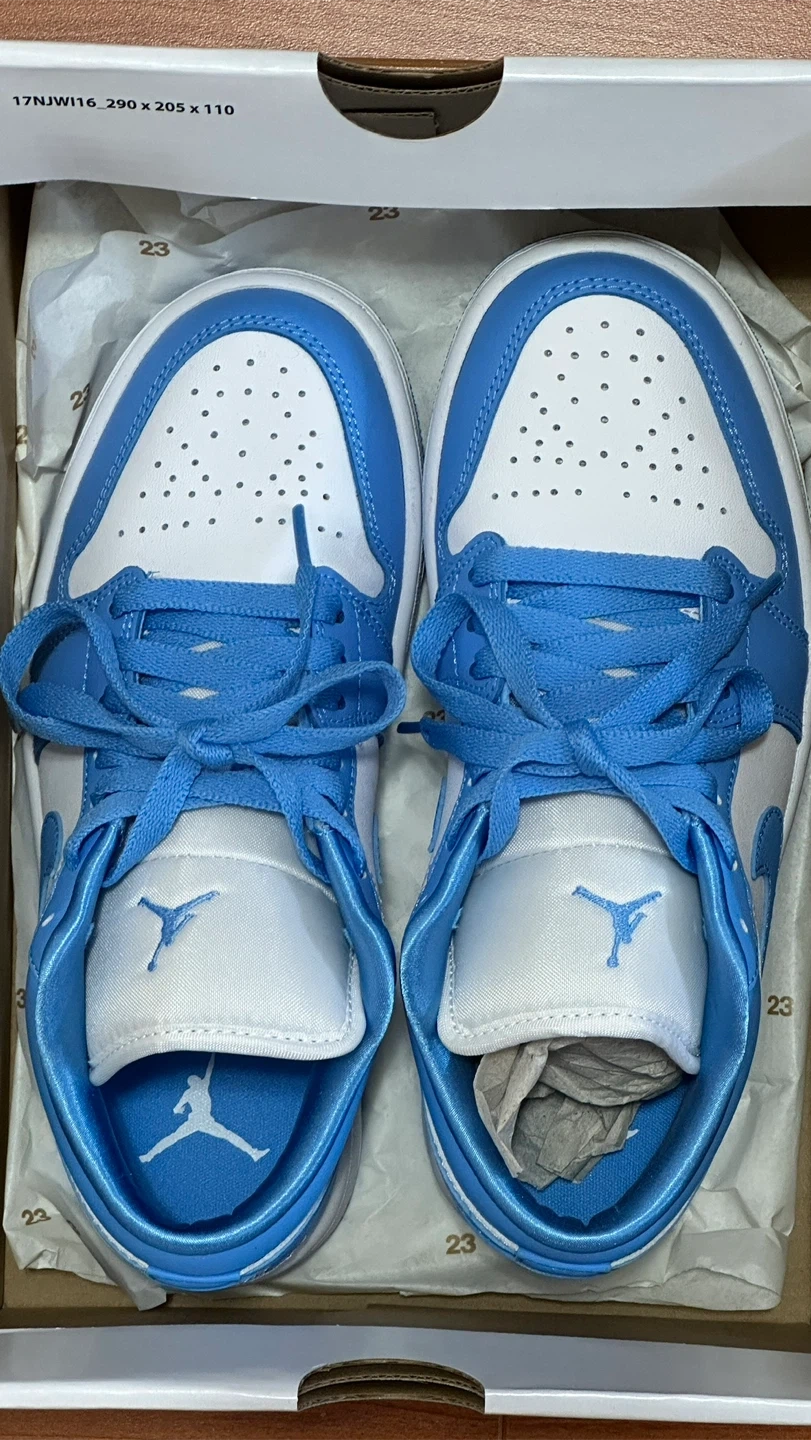 Nike Air Jordan 1 Low University Blue Size 6 Worn only once, no creases or marks. Very fresh pair in excellent condition. Classic and goes with everything. Hard to find one this new for this price. Pickup only: near Joyce station.