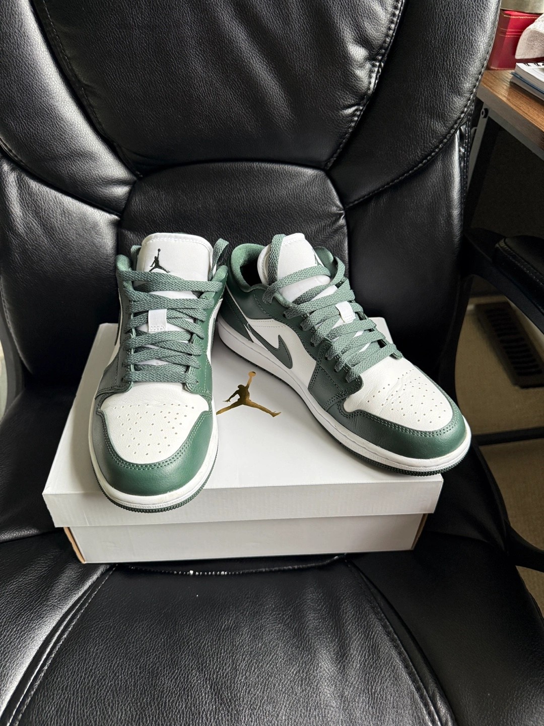 Selling a pair of Nike Air Jordan 1 Lows in the "green jade" colourway, size 9 US They come with the original box. Worn only twice.
