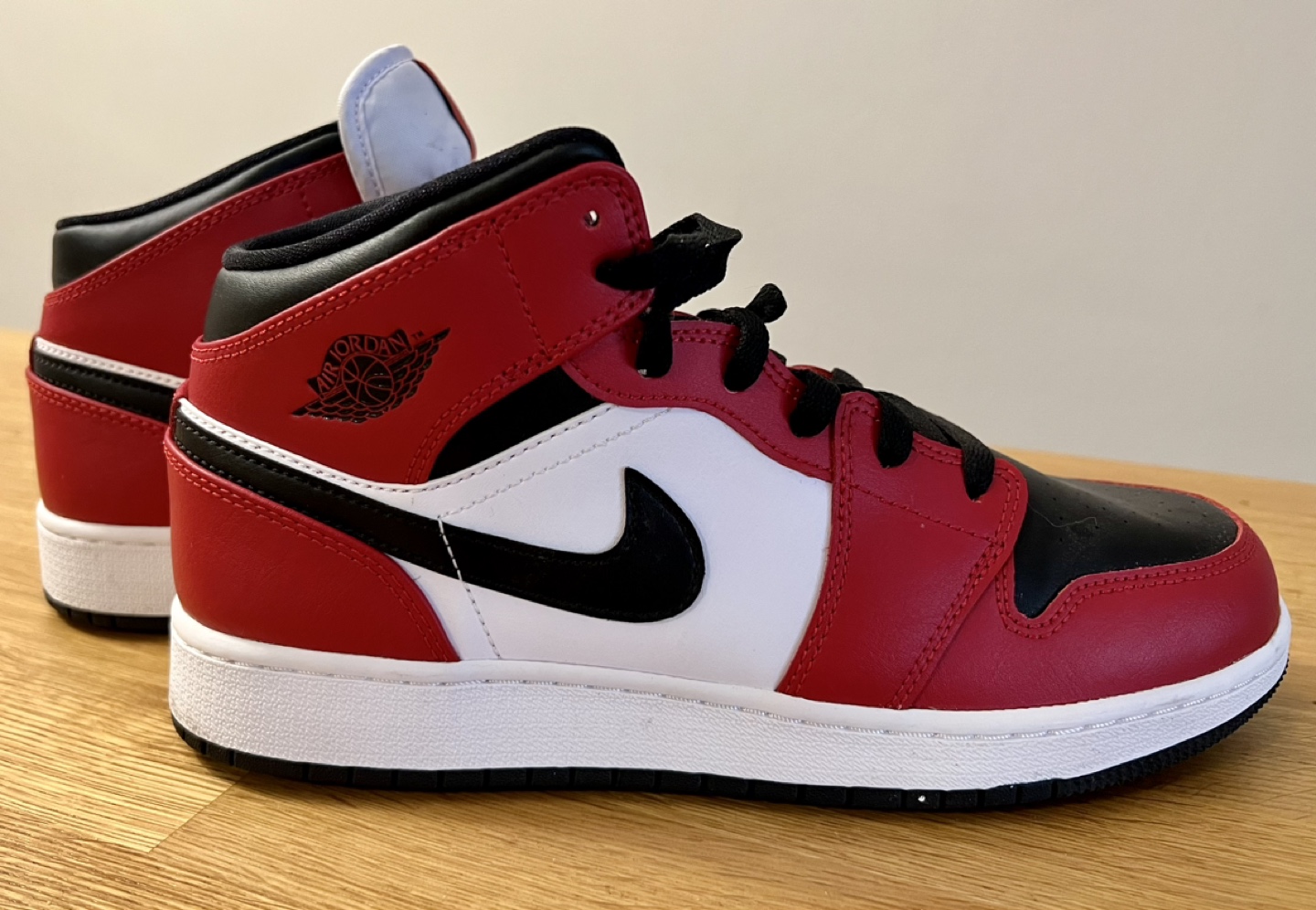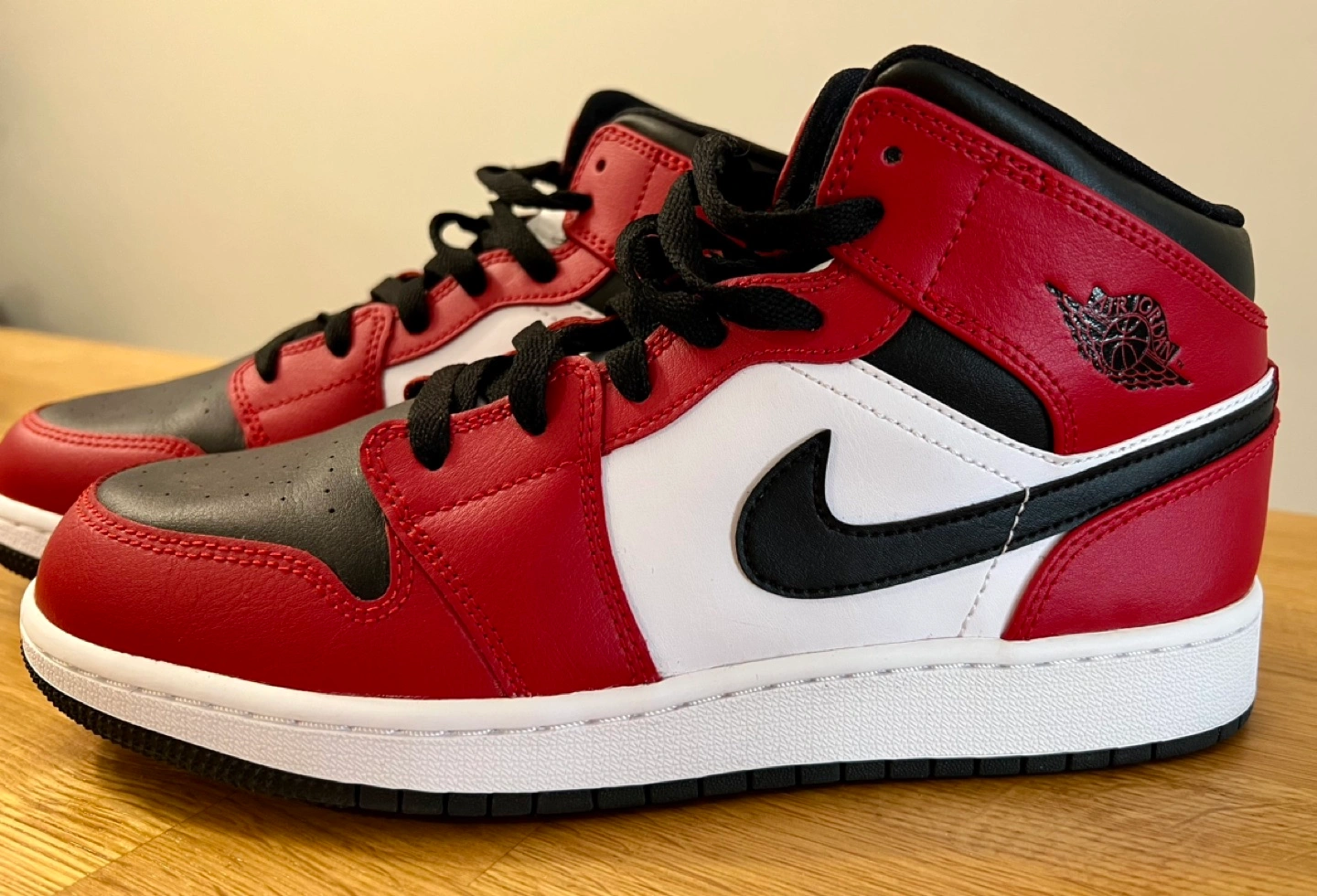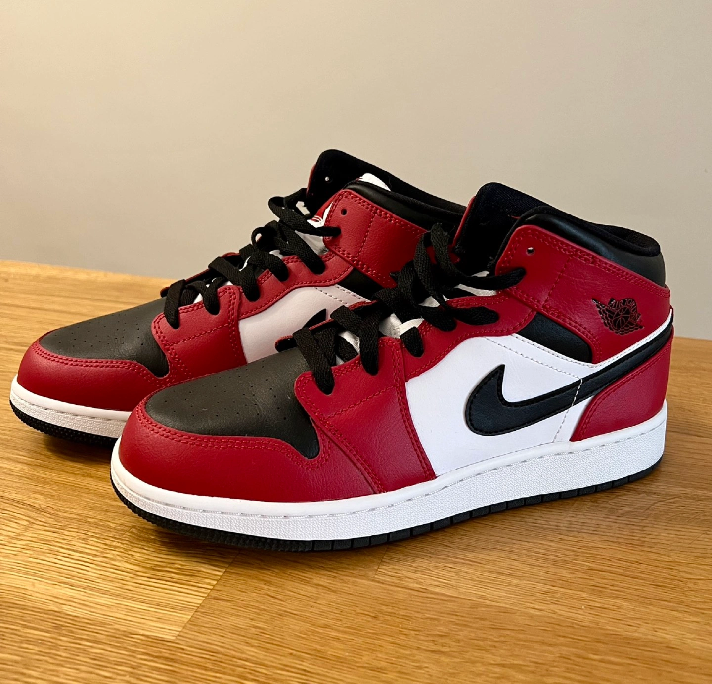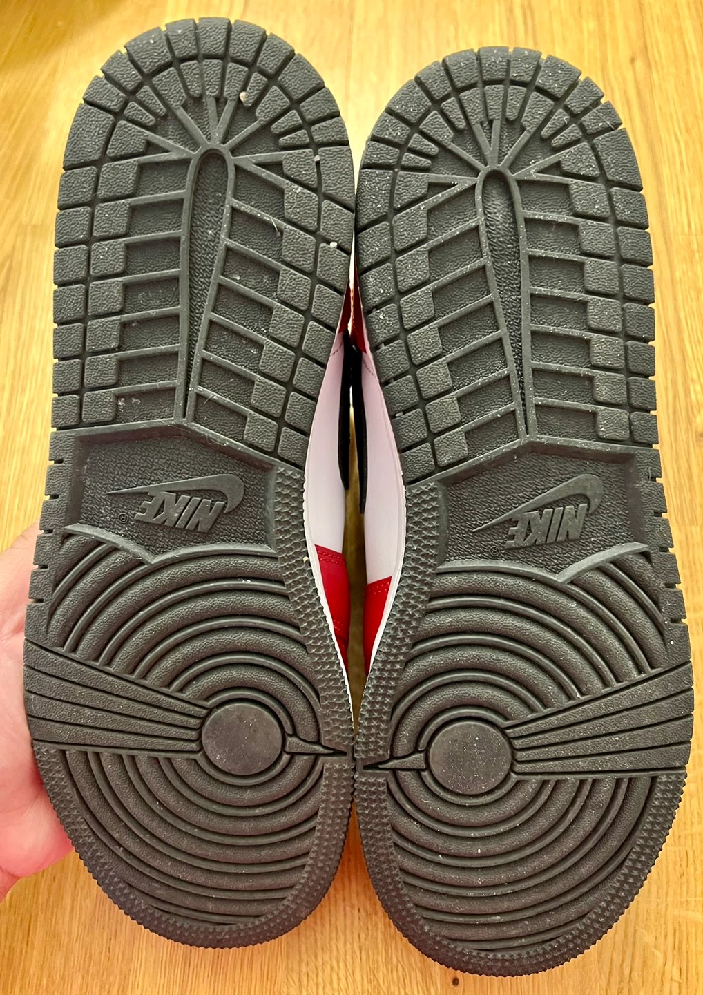 The Jordan 1 Mid Chicago Toe features a black, white, and Gym Red leather and nylon upper. Nylon tongue featuring a black "Jumpman" logo set and a white midsole complete the design. These sneakers belonged to my daughter who only wore them a few times are you can see from the soles. She grew out of them and no longer fits her. She kept them in great condition. No marks, no rips or stains. Size 7 Youth (similar to a women’s 8-8.5 size) Unfortunately we no longer have the box but has been stored properly to keep sneakers in great condition.