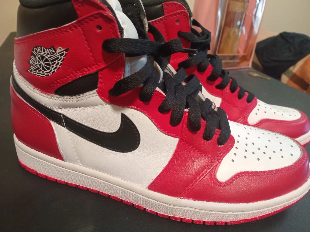 Selling a pair of Nike Air Jordan 1 Retro High sneakers in a striking red and white colourway! These iconic shoes feature the classic Jordan design with the signature Nike swoosh. Great for adding a pop of colour to your wardrobe or for hitting the court CHECK OUT THUS LINK ALL ABOUT THESE SHOES; https://a.co/d/2N3HRgS