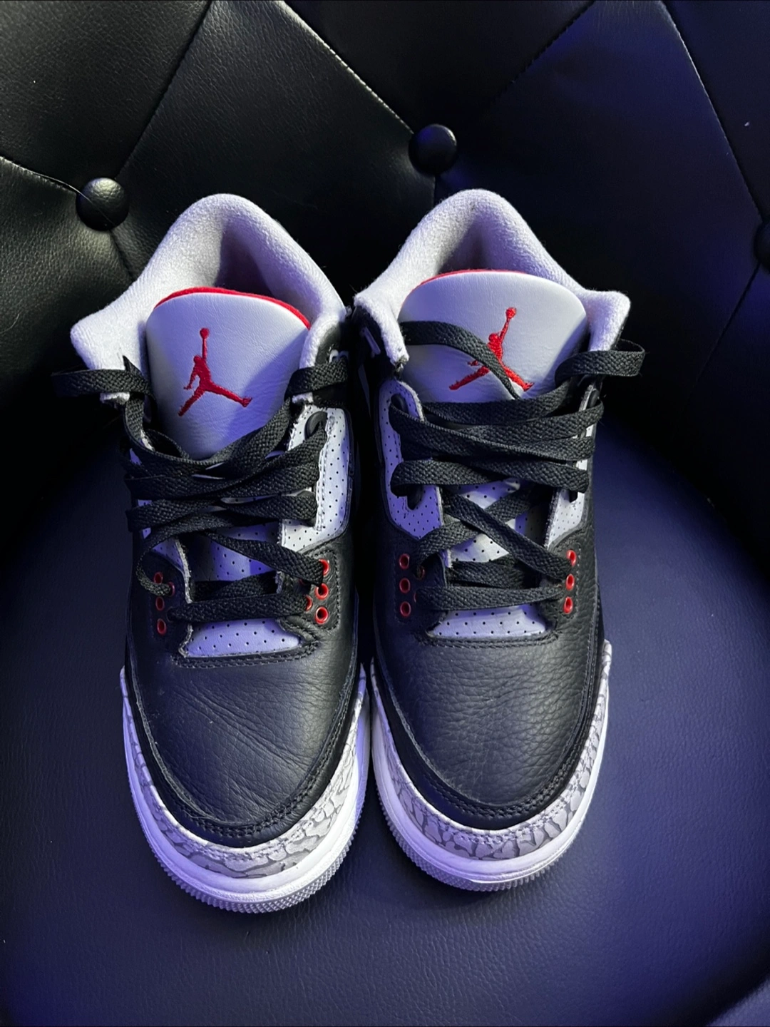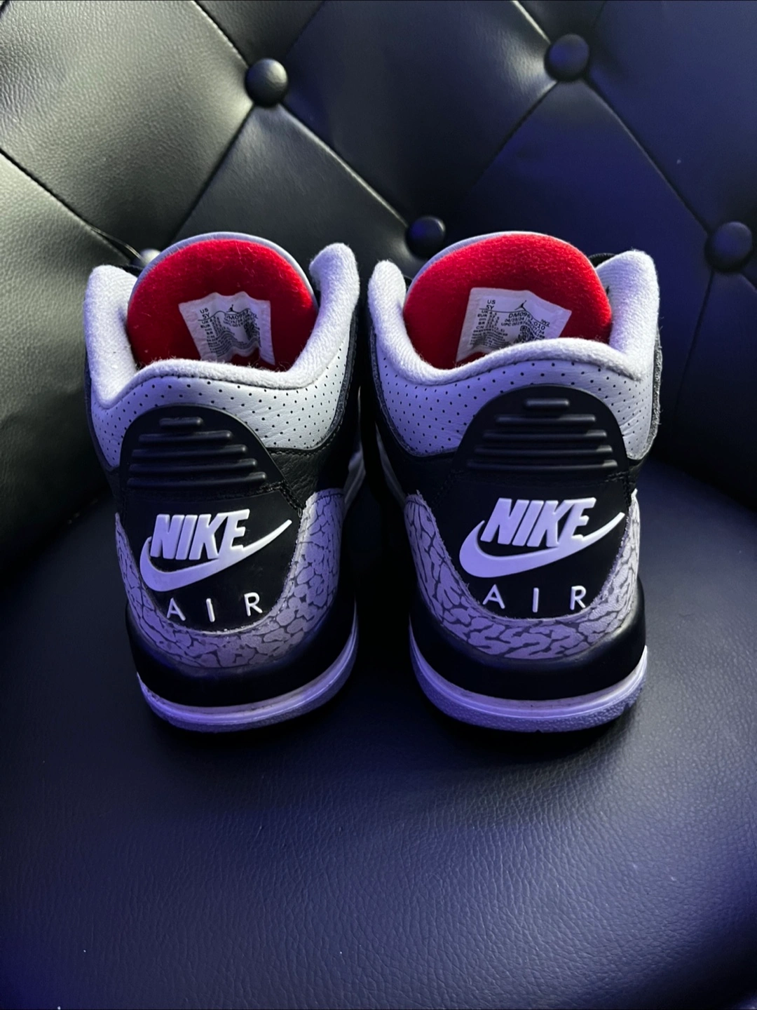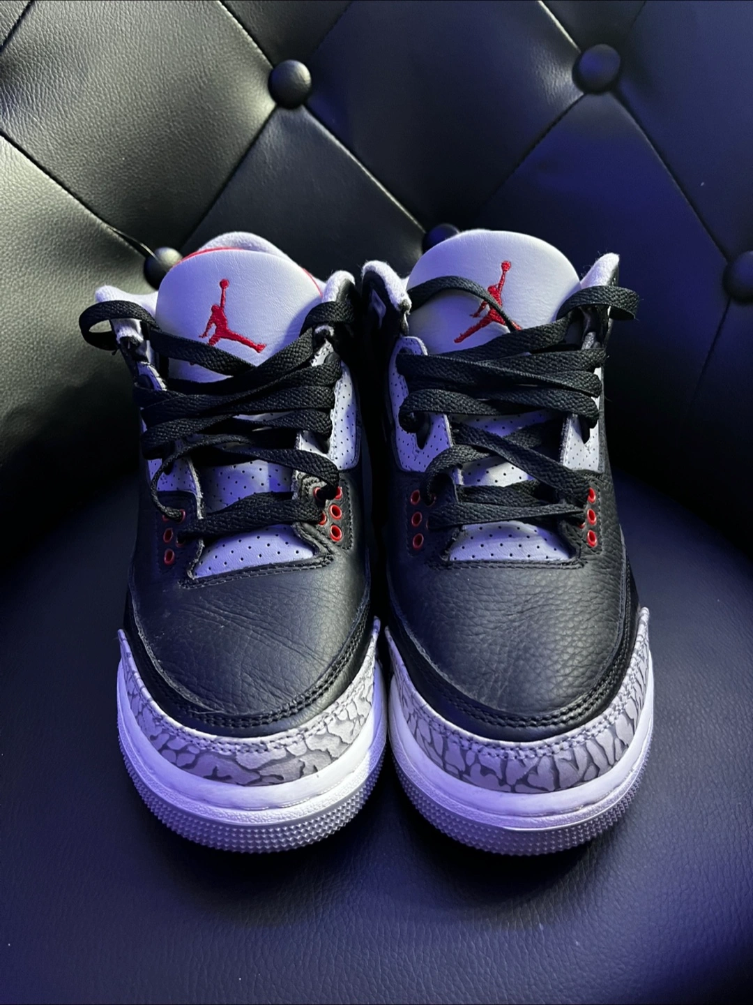 Selling a pair of Nike Air Jordan 3 Retro in the classic Black Cement colourway. These shoes are in used condition, with some signs of wear on the soles as pictured. Perfect for collectors or anyone looking to rock a timeless style!