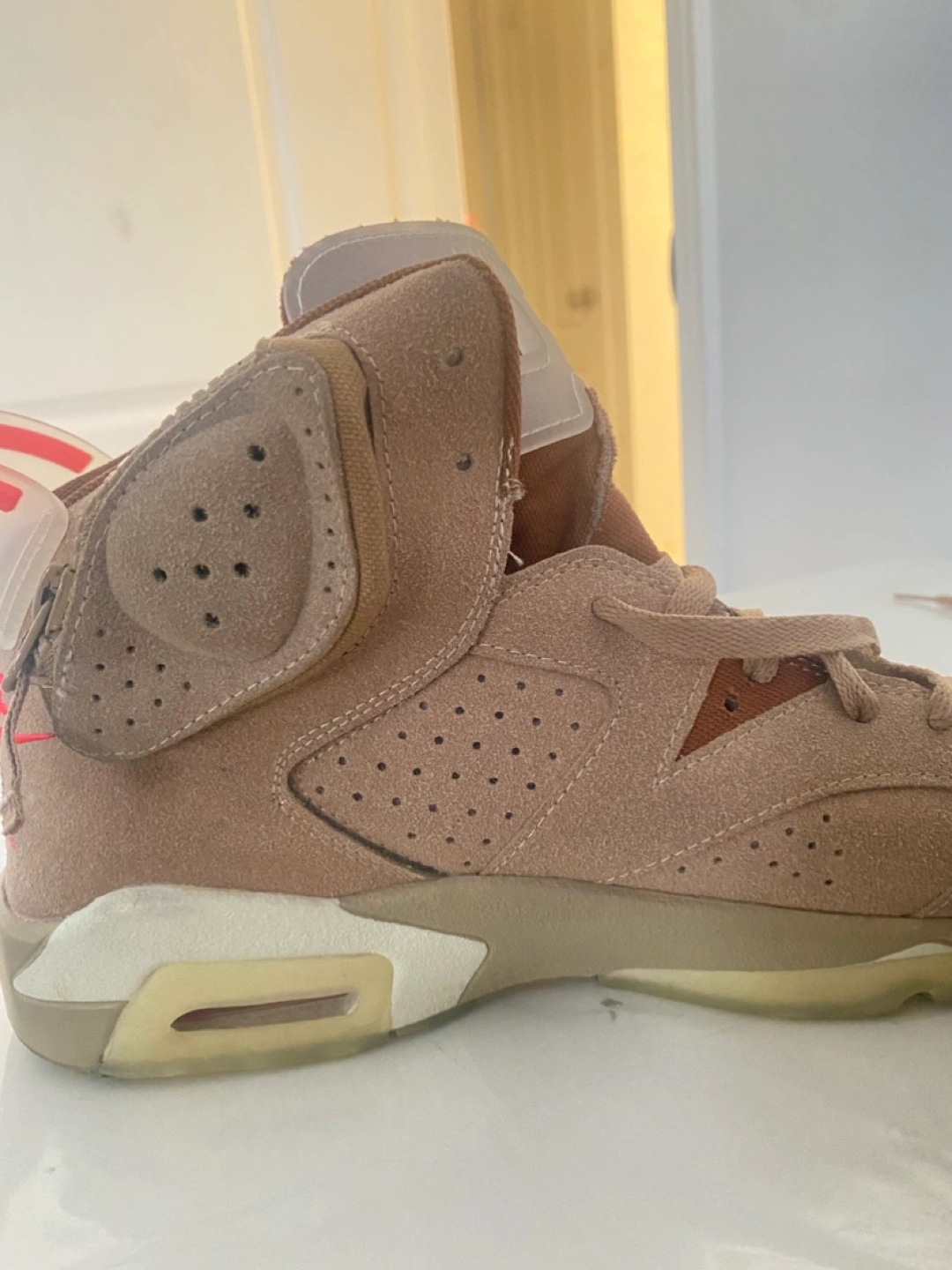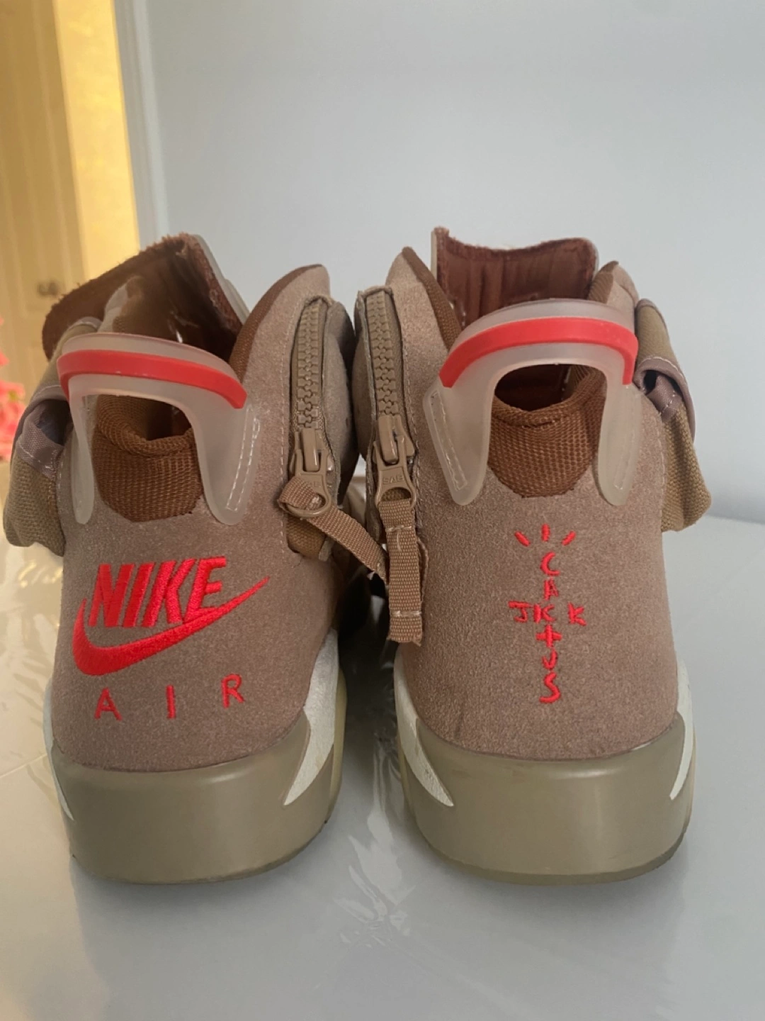 Selling a pair of Nike Air Jordan 6 Travis Scott sneakers. These are in good condition and ready for a new home! They feature a unique design and are perfect for any sneaker enthusiast