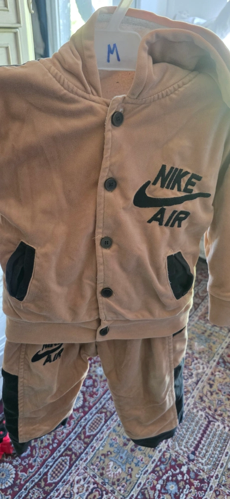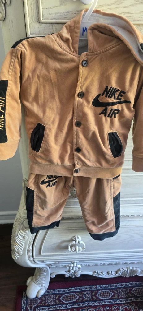Selling a cute Nike Air tracksuit for kids! It's a size M and features the Nike Air logo. The material is soft and comfy, perfect for everyday wear. It's in great condition and ready for a new home