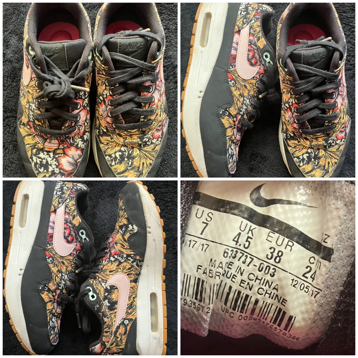 Hi, I am selling a pair of Nike Air Max 1 with a unique floral pattern! They are a size US 7, UK 4.5, EUR 38, and 24 cm. The shoes are in good condition and ready for a new home. Pick up only. (In Scarborough.) Thank you for your interest!