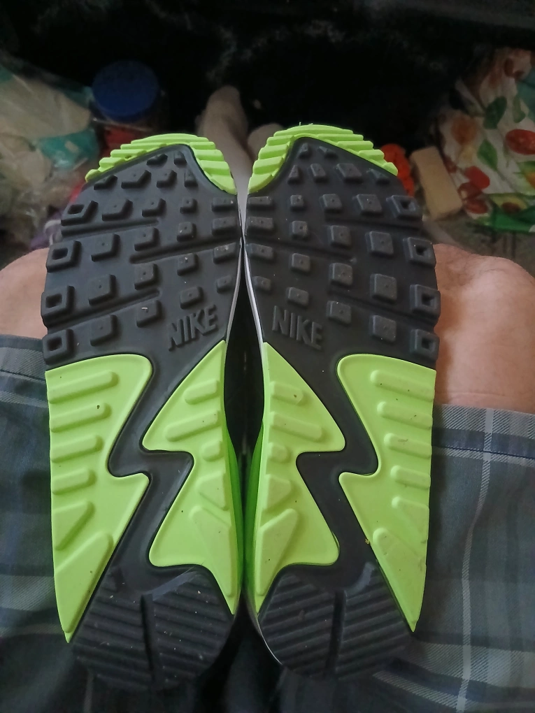 Selling a pair of Nike Air Max 90s in a fresh white and lime green colourway! They are in great condition and come with the original box. These sneakers are a classic and would be a great addition to your collection