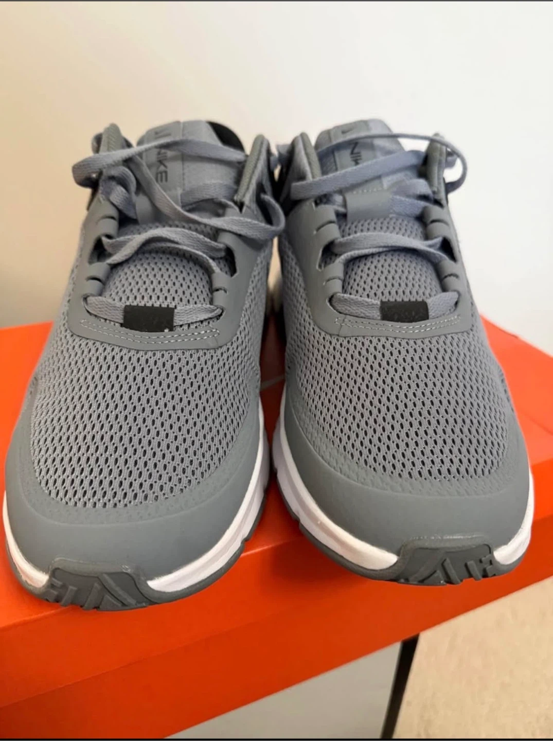These Nike Air Max training shoes are in great condition! They feature a stylish grey colour and the classic Air Max cushioning for comfort and support. Perfect for workouts or everyday wear!