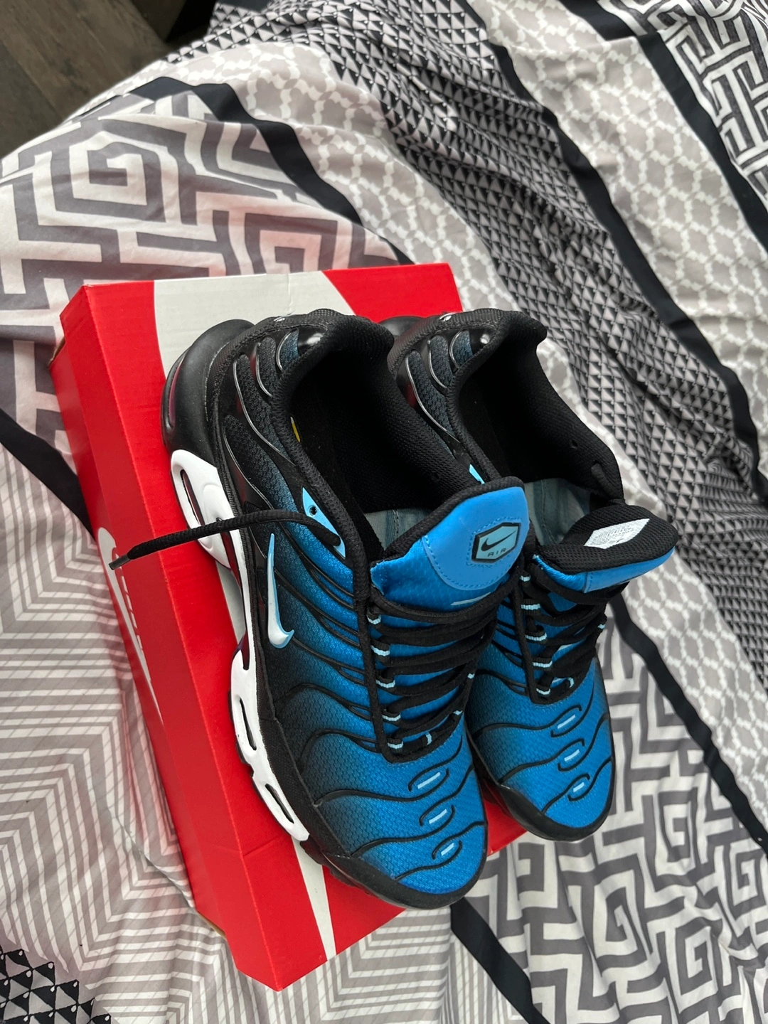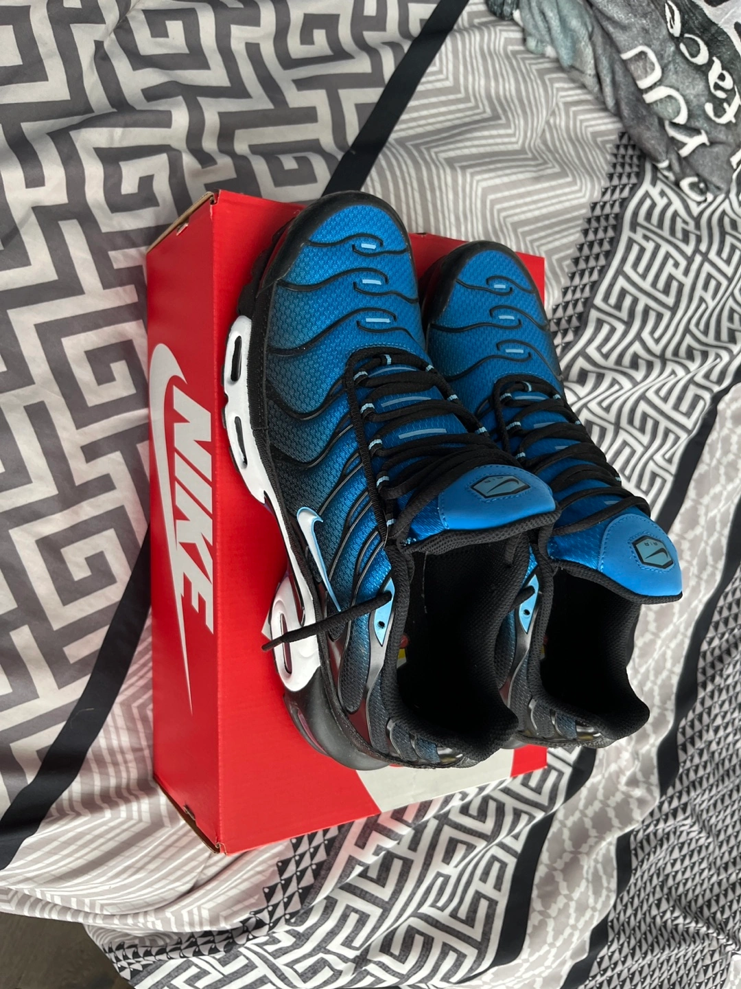 Selling a pair of Nike Air Max Plus TN in blue. They come with the a nike box! Size is 9.5 US. Basically brand new only been tried on