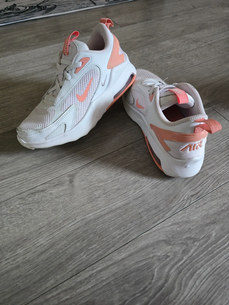 Selling a pair of Nike Air Max shoes in great shape! They are a Kids size 1.5 Y and feature a white and coral colour scheme. The Air Max cushioning provides great comfort and support for everyday wear or play. Available for pick up only