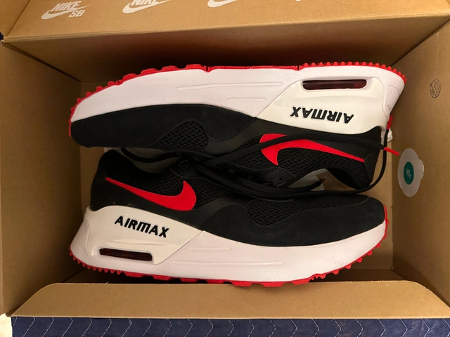 Nike Air Max SYSTM - Black / University Red-White Size 12. Comes with box. Like new, worn once. Price is firm. Part of a private collection sale. If listing is up, item is available.