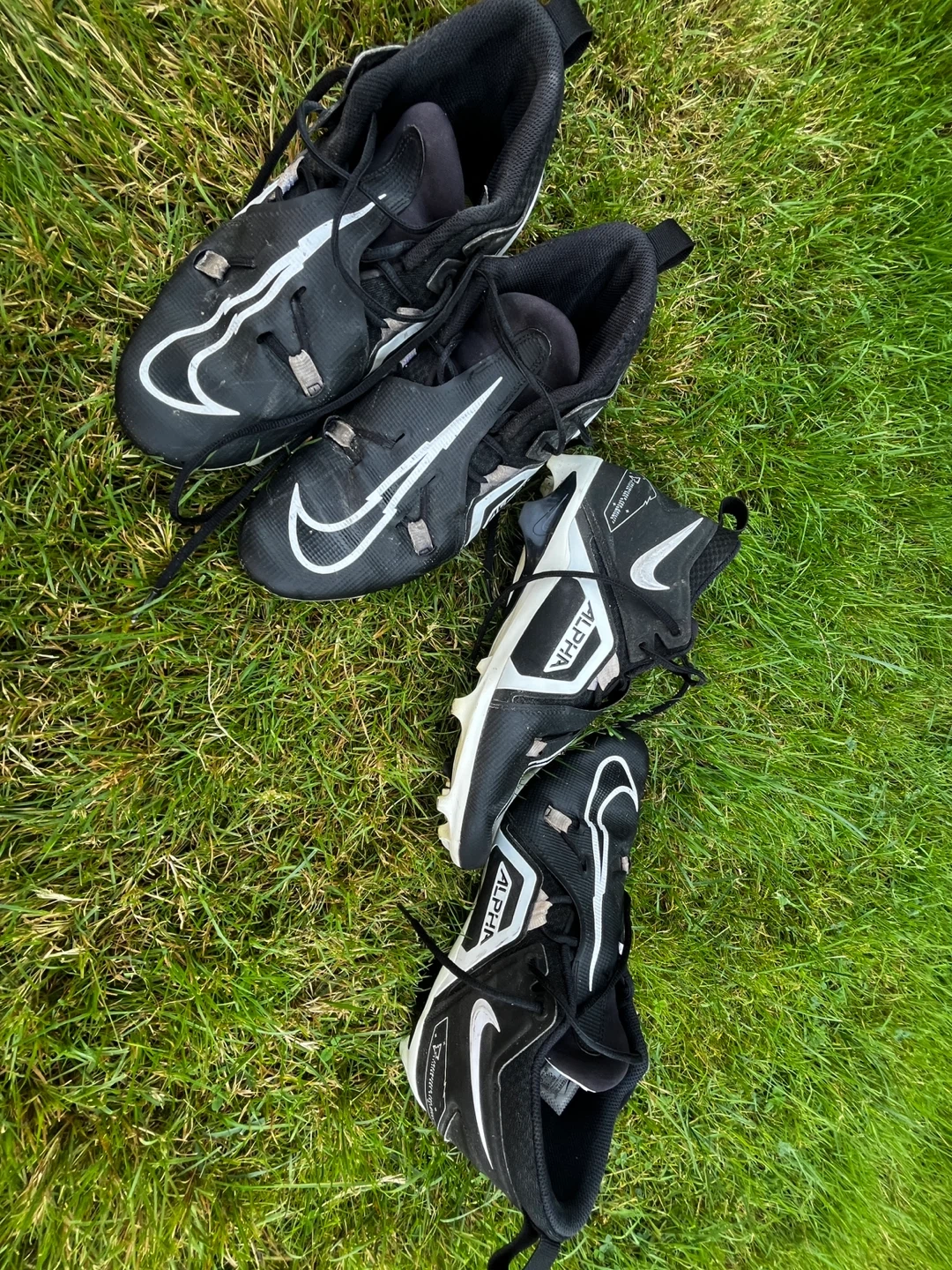 Selling a pair of Nike Alpha Menace football cleats. They're in good condition and ready for the field! Perfect for your next game or practice. Sizes 11.5 and 12 35$ each