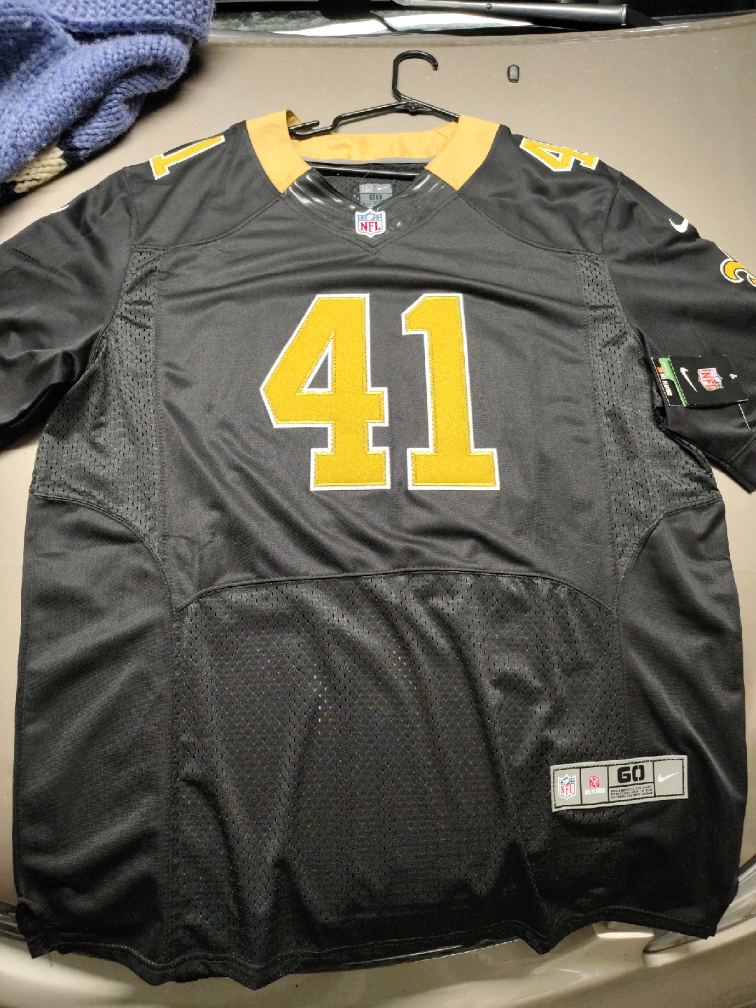 Selling a Nike Alvin Kamara #41 New Orleans Saints jersey. It's black and gold in colour. Great for any Saints fan!
