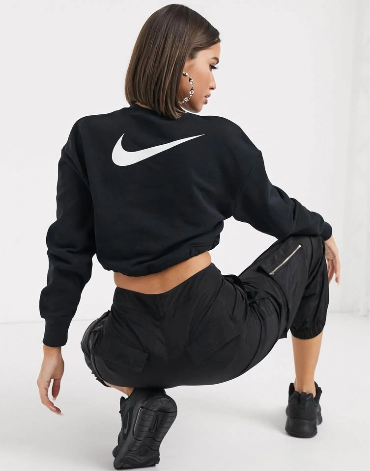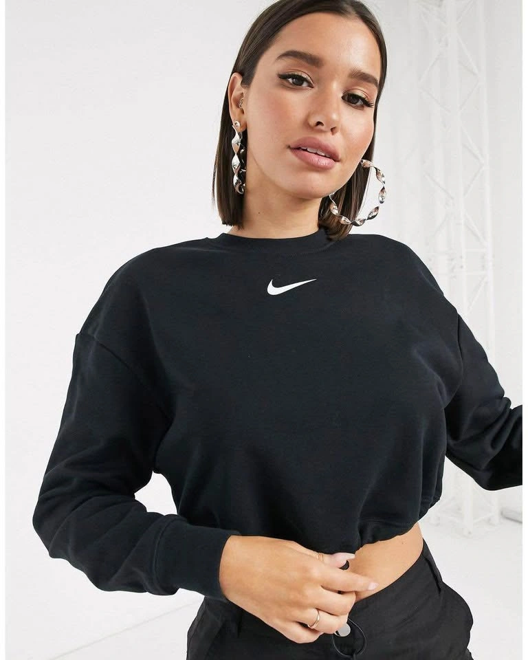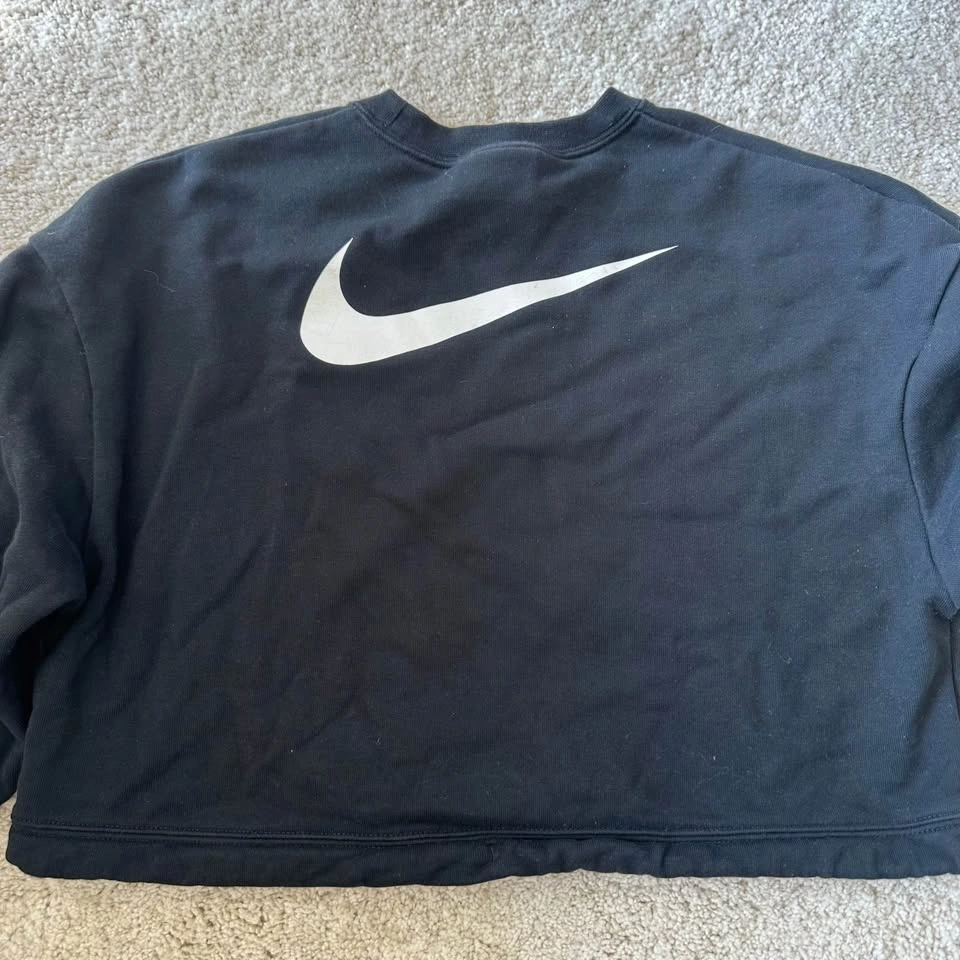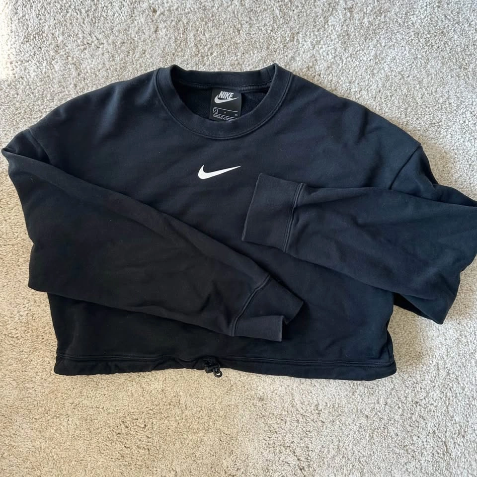 Nike Black Elastic Drawcord Cropped Mini Swoosh Sweatshirt Size small Black Cropped Adjustable drawcord $45