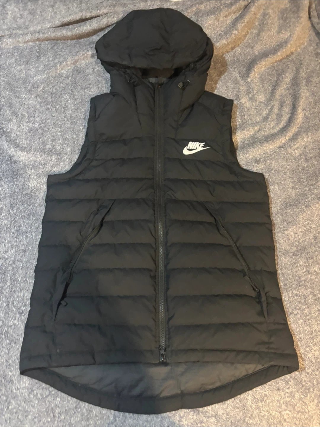 Selling a Nike black padded vest in size medium. It's in great condition and ready to keep you warm! Perfect for layering during those chilly days.