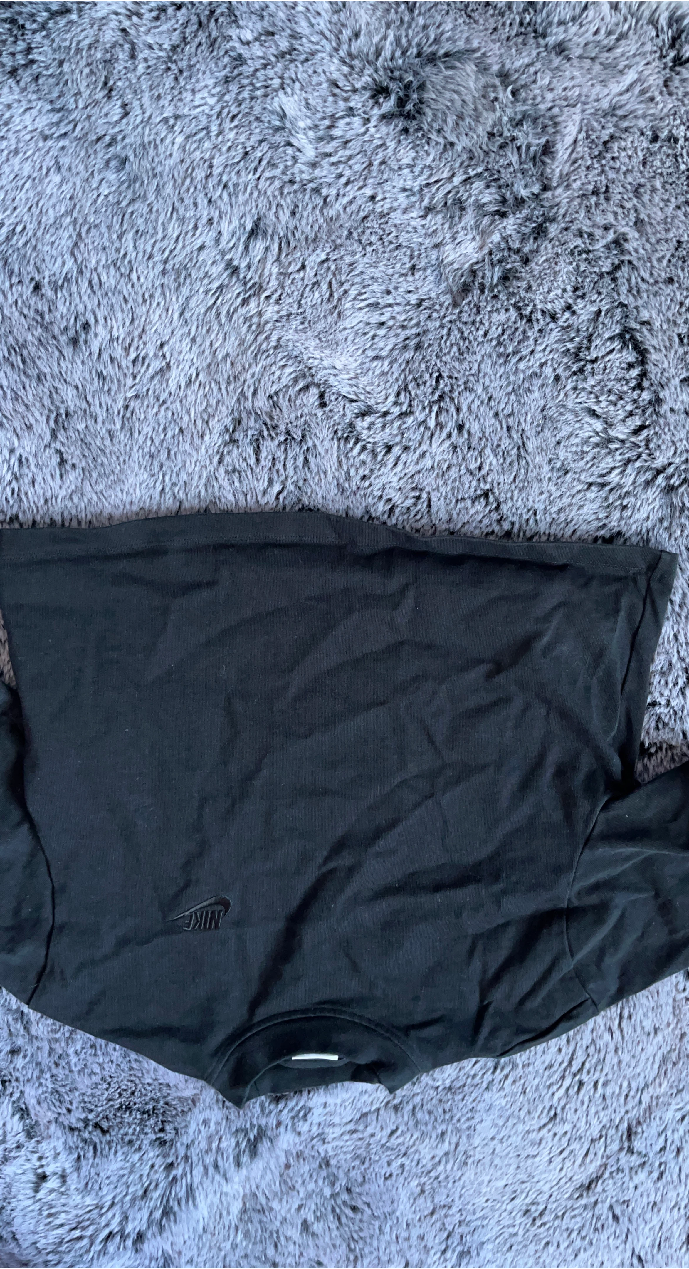Selling a black Nike sweatshirt. It's in good condition and has the Nike logo subtly embroidered on the front. Perfect for staying cozy!