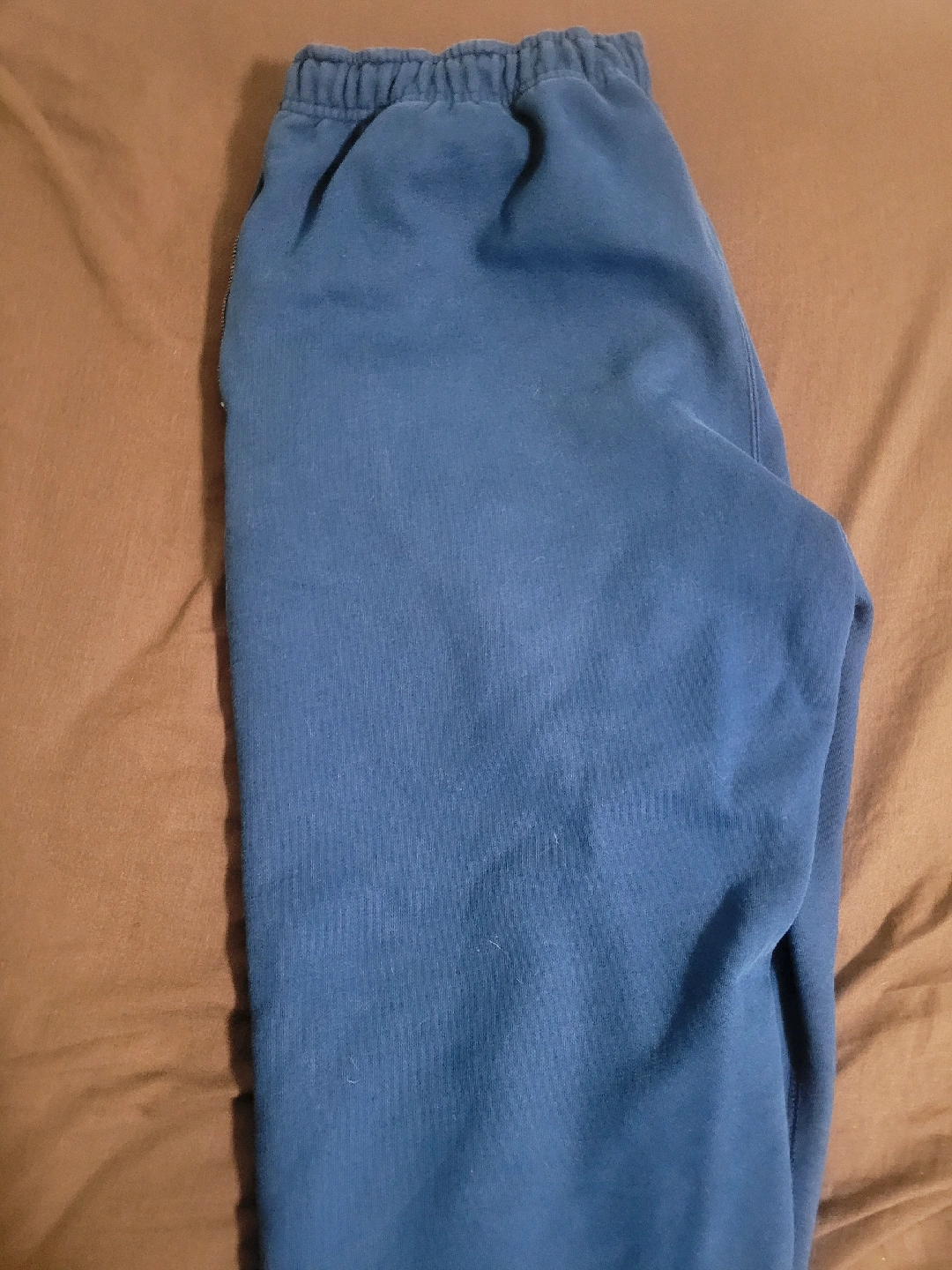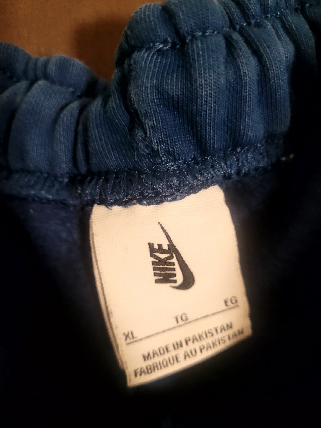 Selling a pair of Nike sweatpants in blue, size XL. They have a drawstring waist and a zipper pocket. Great for lounging or working out! worn a couple times in great condition Nike xl swoosh Sweatpants with zipper pockets could fit L too these are wayyyy better than the Nike club sweats material is amazing need gone ASAP ❗️ pick up only Around shierdan mall and Erin mills pwky Message for more