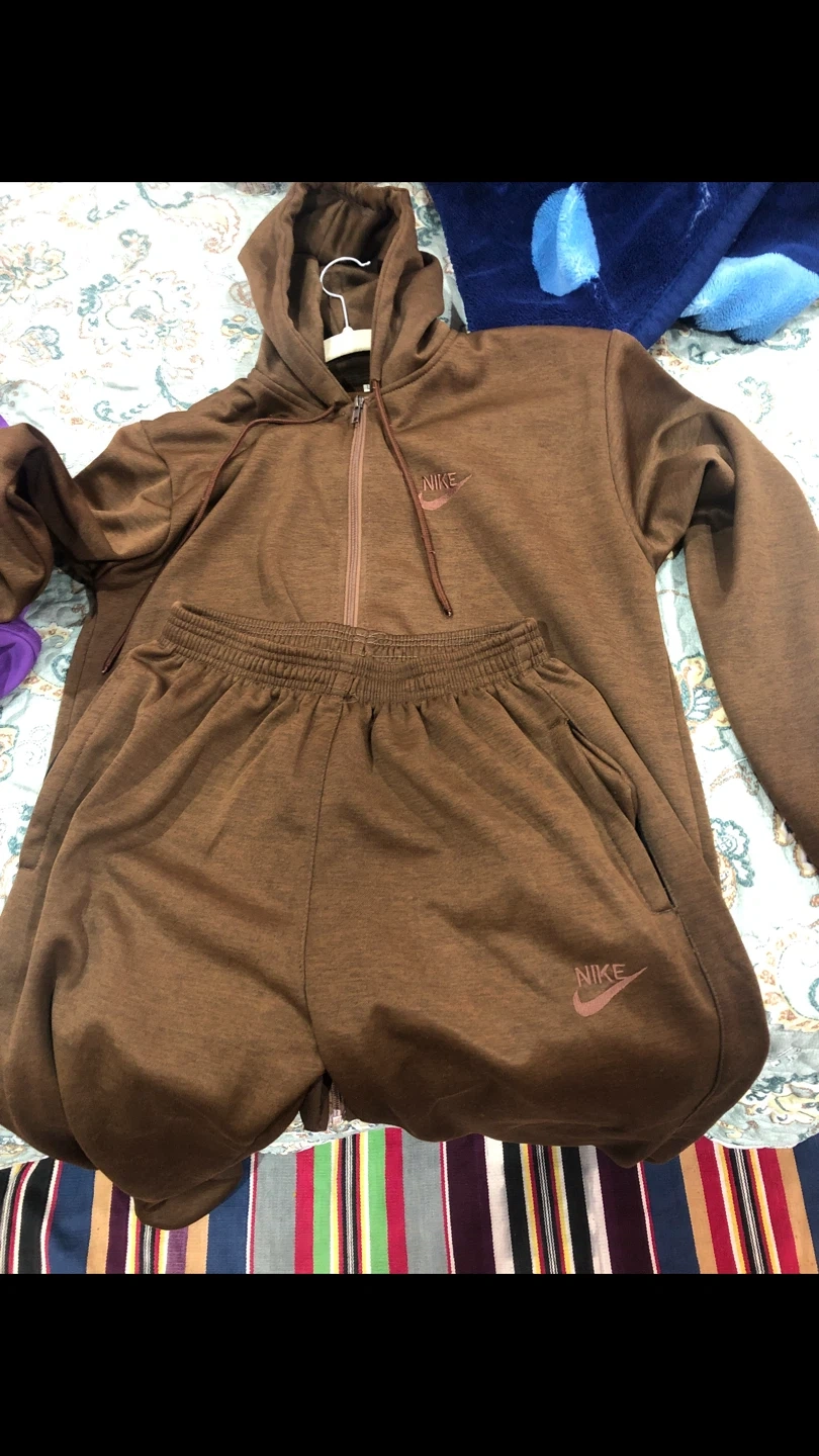 Selling a matching Nike hoodie and shorts set in a warm brown colour. Perfect for lounging or a casual day out!