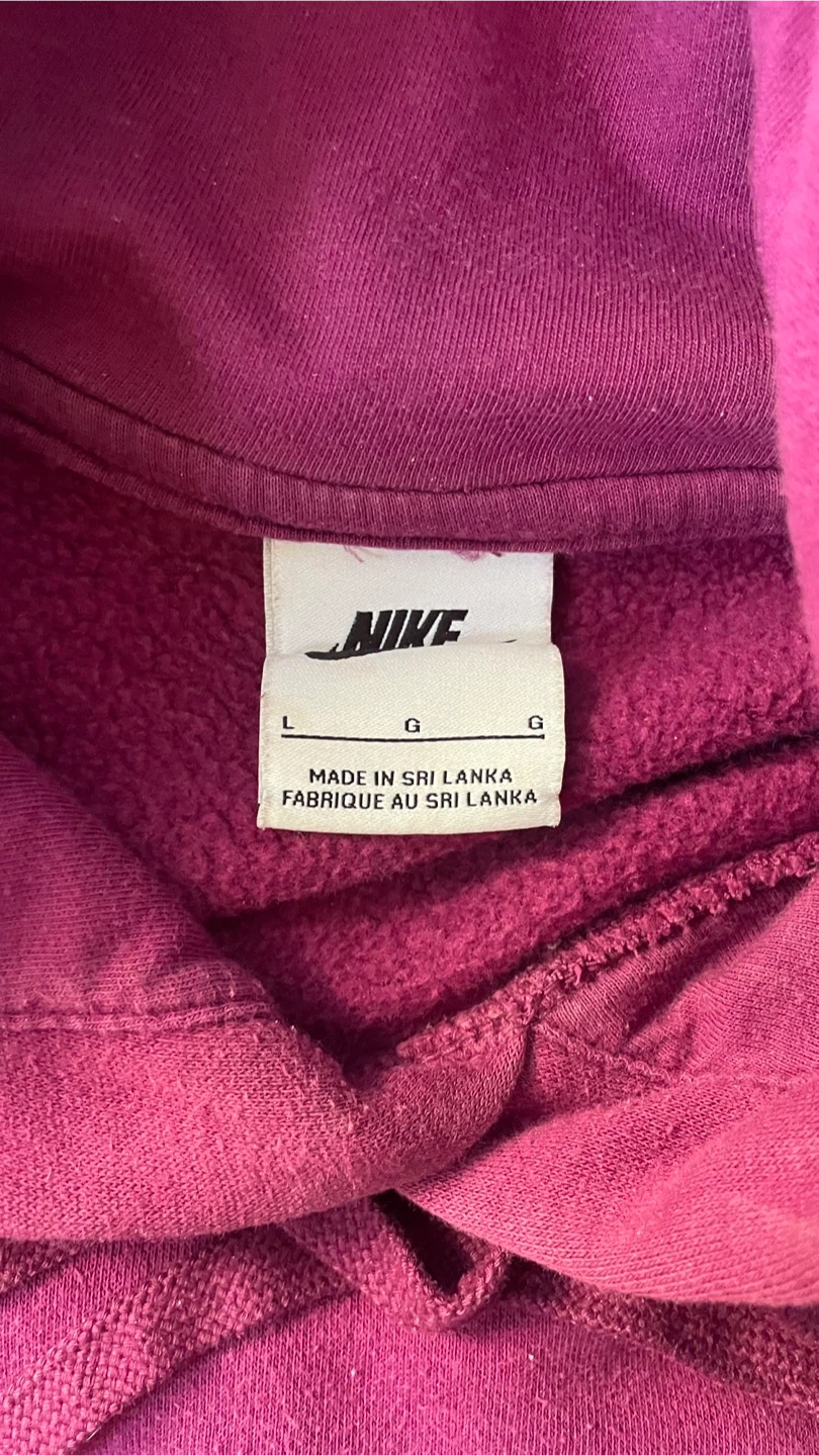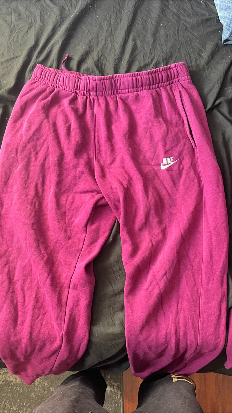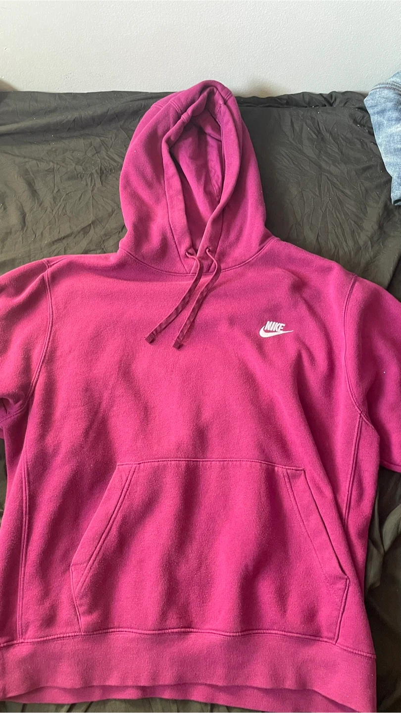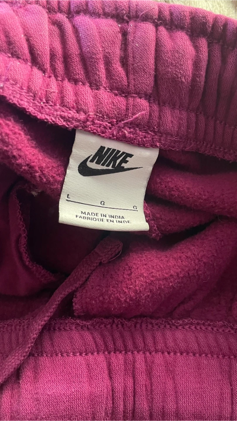 Selling a matching Nike hoodie and sweatpants set in burgundy! Both pieces are a size large and in good condition.