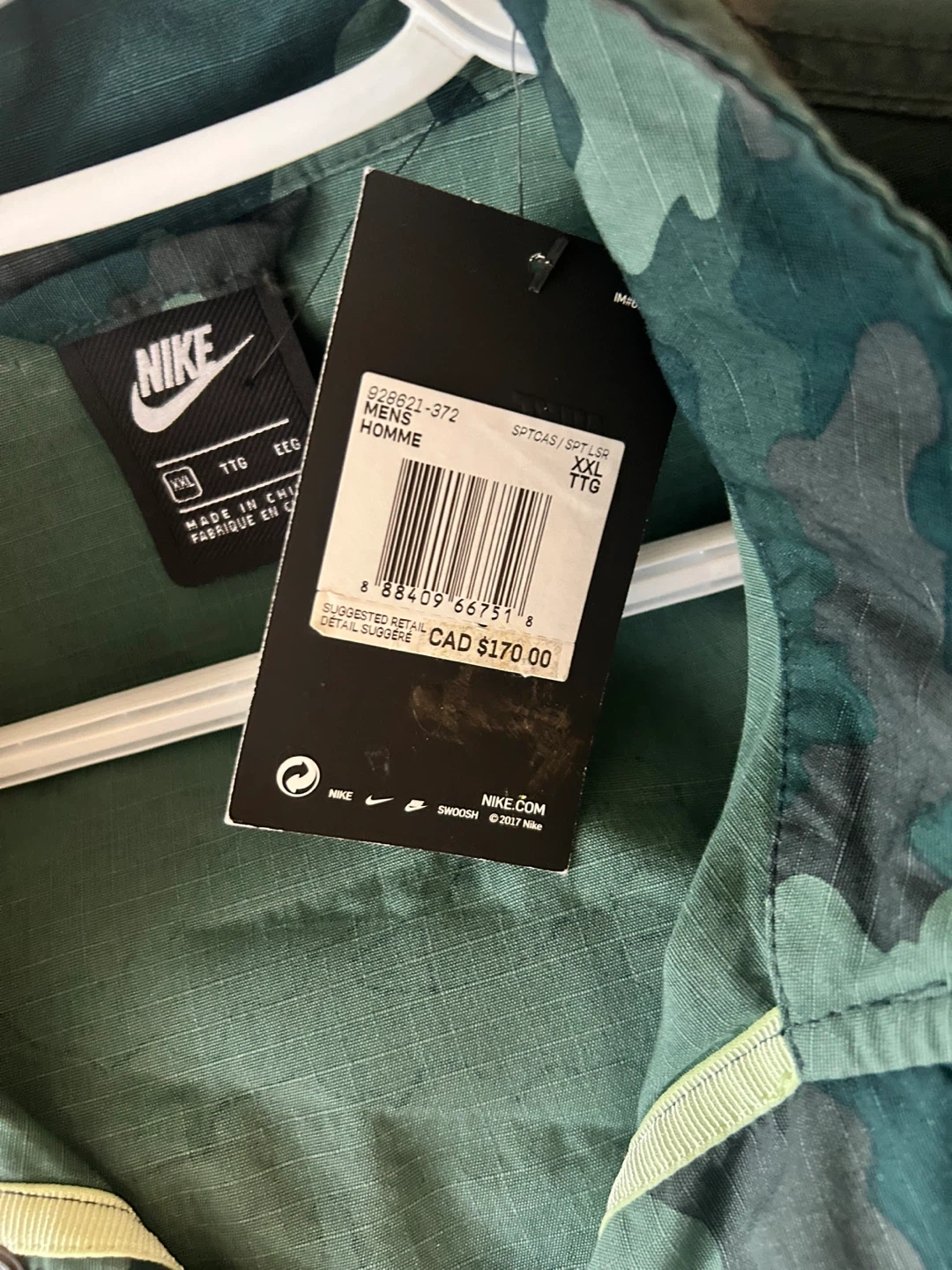 Nike camo jacket in size XXL. It's in great shape and ready for a new home! Originally retailed for $170 CAD