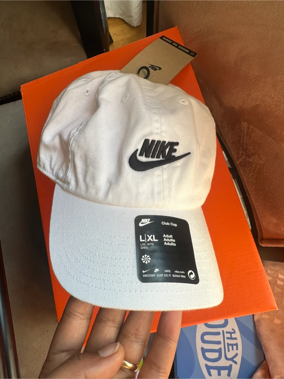 Selling a brand new Nike Club Cap in white, size L/XL! It comes with the original tag and box. Perfect for adding a sporty touch to your everyday look