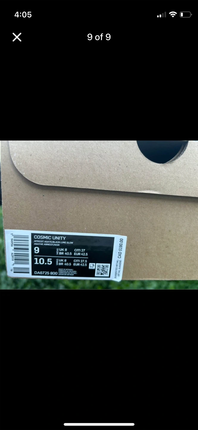Selling a pair of Nike Cosmic Unity Agathe Allington Glow in size 9. These shoes are in great condition and come with the original box. The size is US 9, UK 8, BR 40.5, and EUR 42.5.