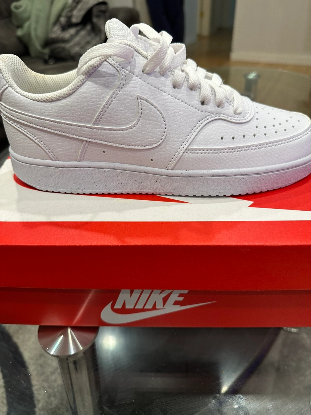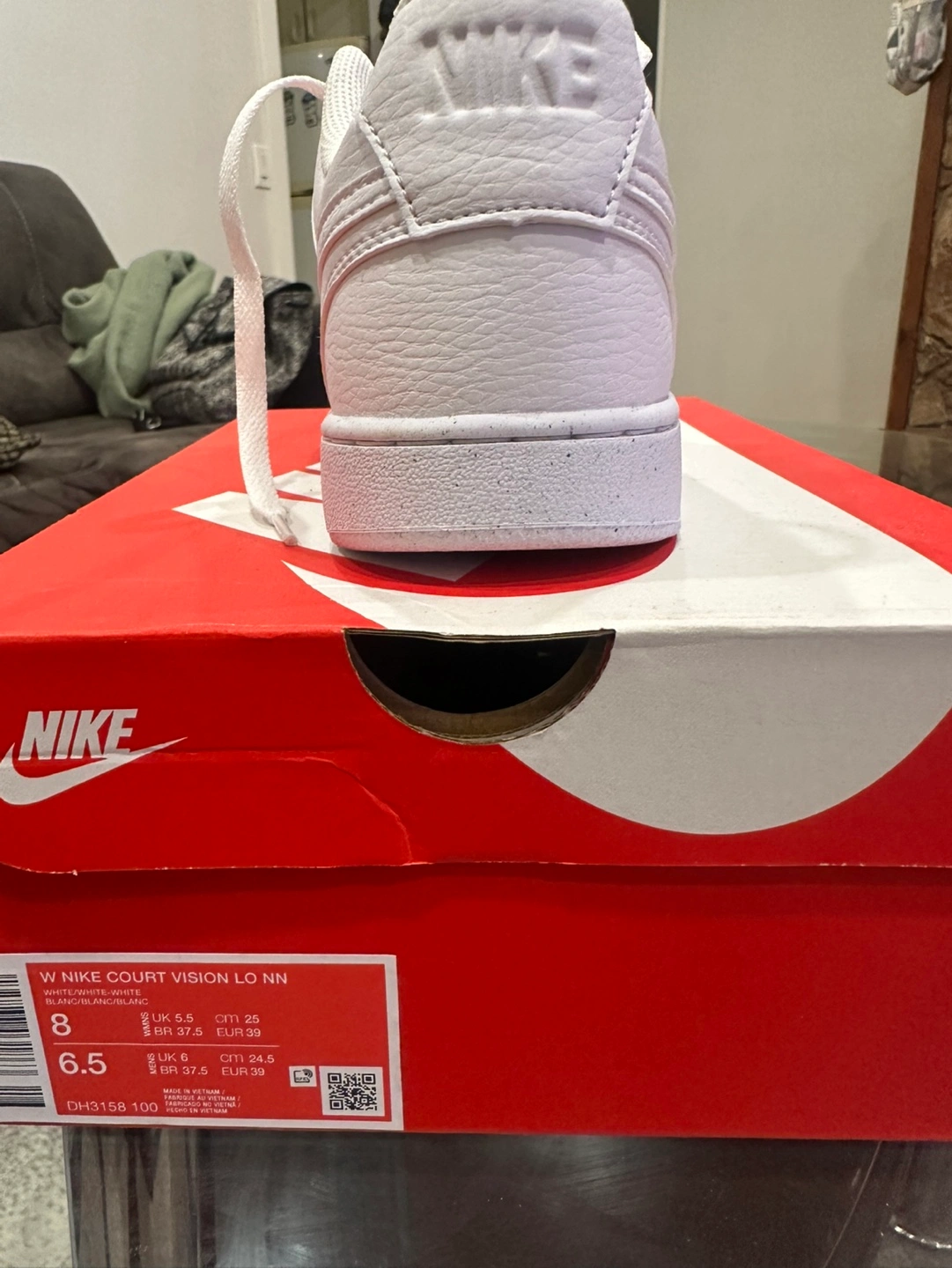 Women's Nike Court Vision Low NN sneakers. White leather upper. Size 8. New in box.