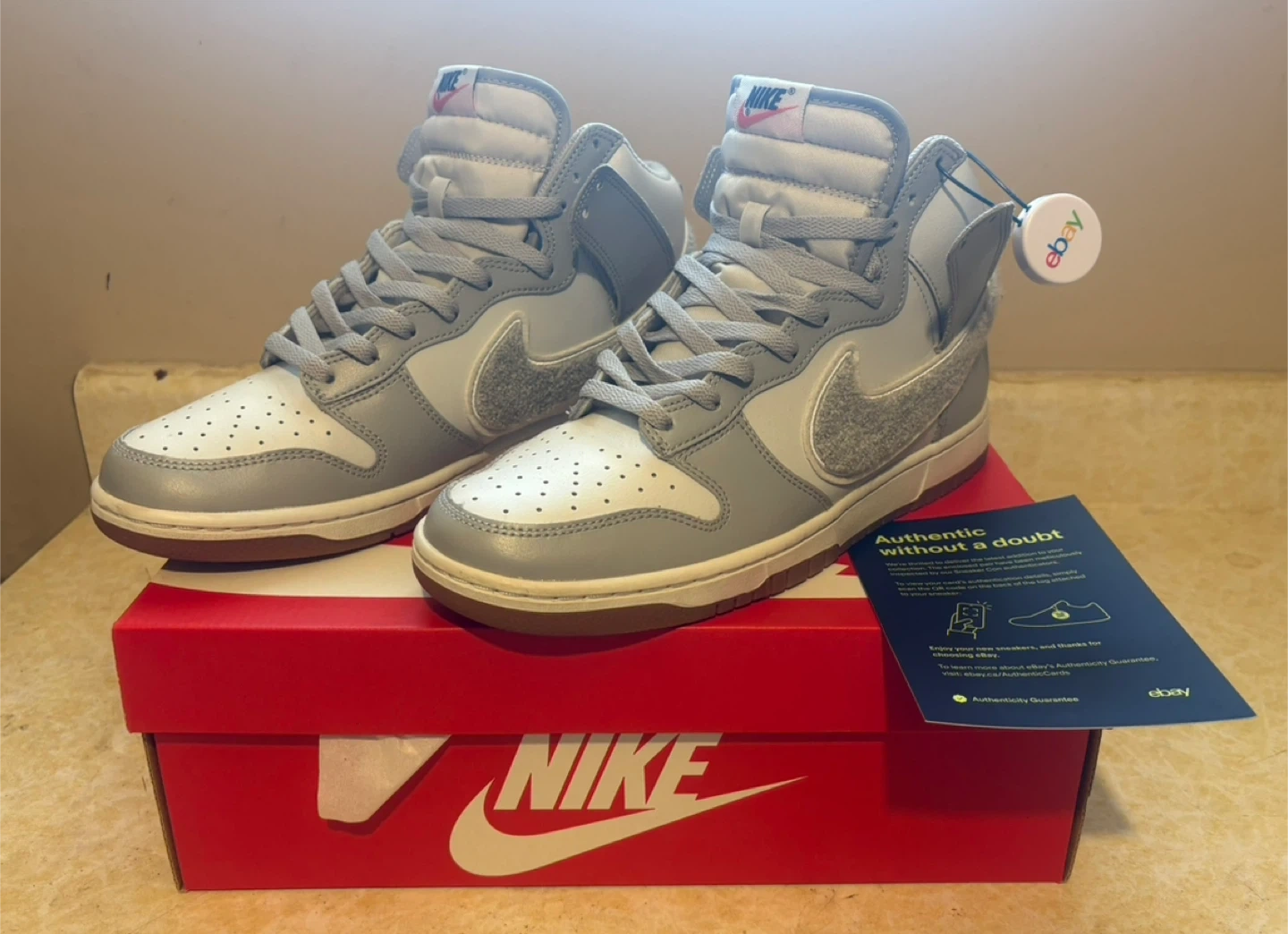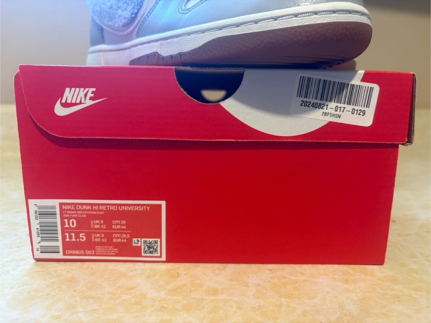 Selling a pair of Nike Dunk Hi Retro University Grey sneakers in size 10! These stylish high-tops come with the original box and are in great condition. Authenticated by eBay!