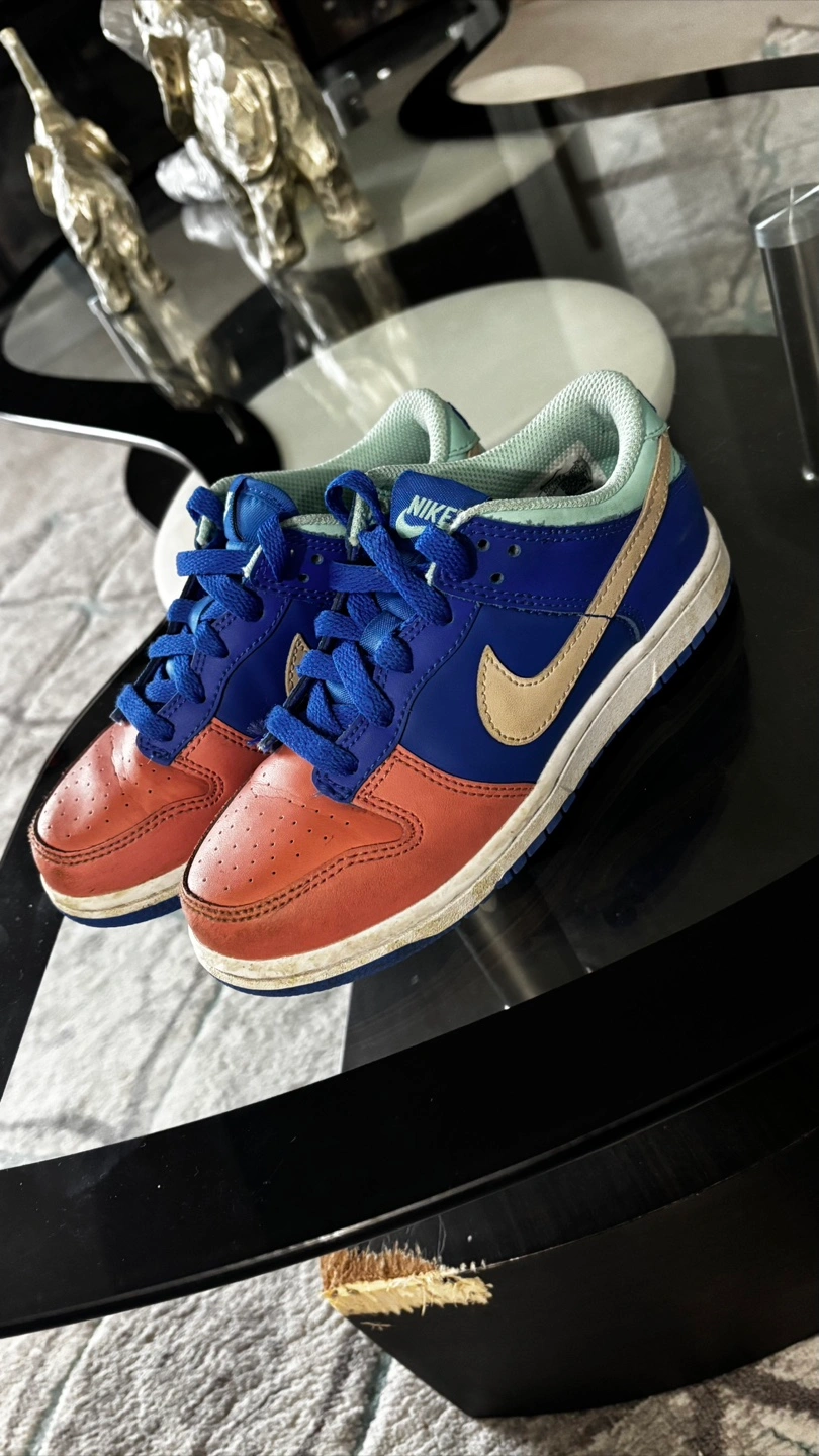 Selling a pair of Nike Dunk Low kids shoes. They are in used condition but still have lots of life left! Perfect for your little one to run around in.