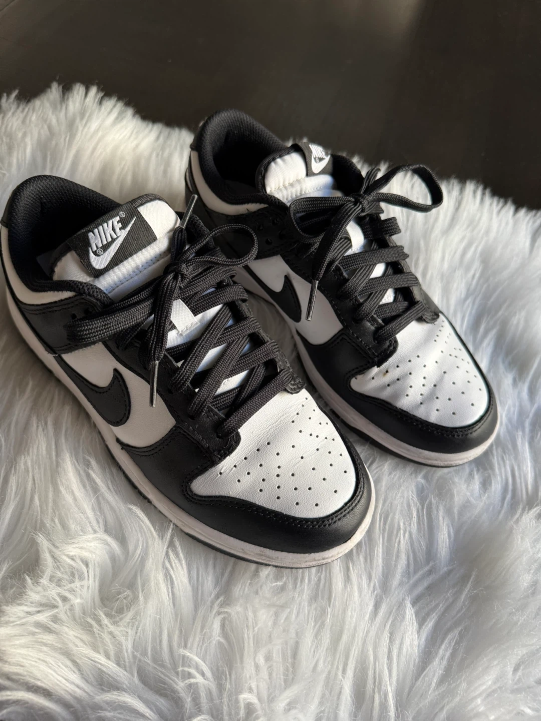 Selling a pair of Nike Dunk Low Pandas in size 7.5 US! The shoes are in great condition and feature the classic black and white colourway. The style code is DD1503-101. Perfect for any sneaker enthusiast!