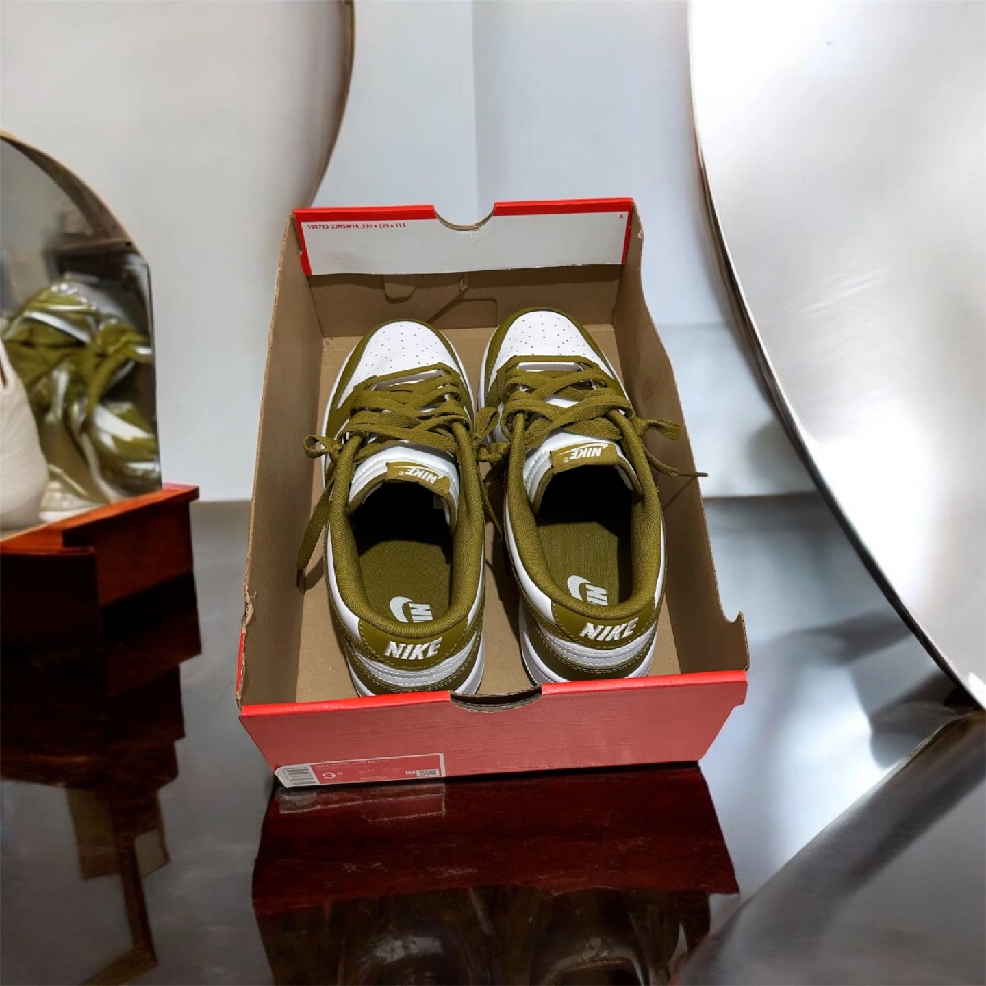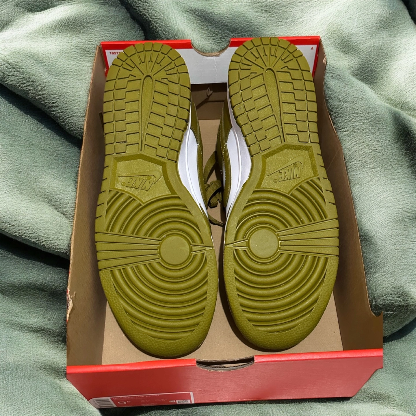 Up for sale is a pair of Nike Dunk Low Retro sneakers in the stylish White/Pacific Moss colorway. These shoes are size 9.5 US Men (UK 8.5 / EUR 43 / CM 27.5 / BR 41) and are brand new, never worn, Got these as a gift, but they’re too big for me and my size is no longer in stock. This pair features a clean and classic design with a crisp white base and olive green overlays, making it a versatile choice for everyday wear or as part of a sneakerhead collection. Style Code: DV0833-105 Condition: Brand New / Deadstock Comes with original box. Perfect for Nike fans, collectors, or anyone looking to add a fresh pair of Dunks to their rotation!