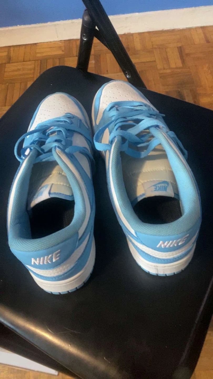 Selling a pair of Nike Dunk Lows in the UNC (University of North Carolina) blue colourway! These shoes are in great condition and ready for a new home. Perfect for adding a pop of colour to your outfit or for any Tar Heels fan