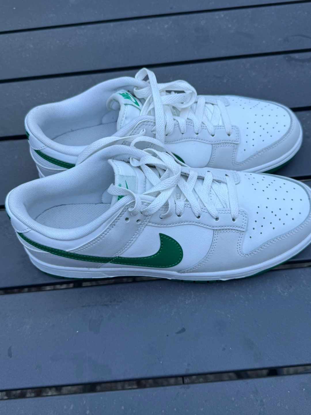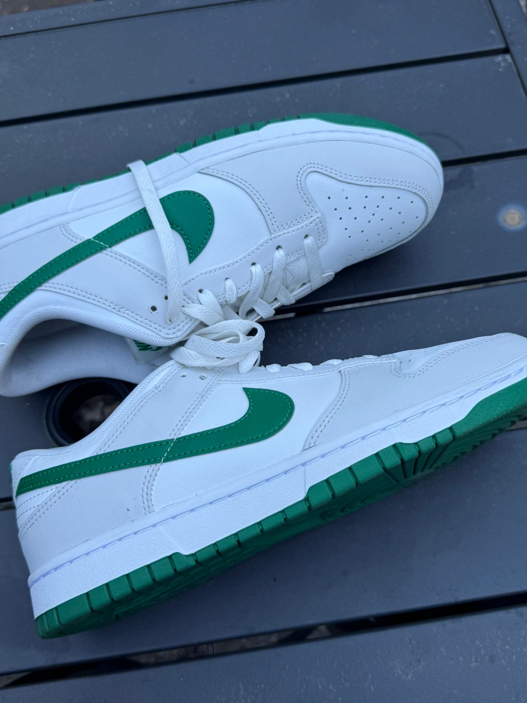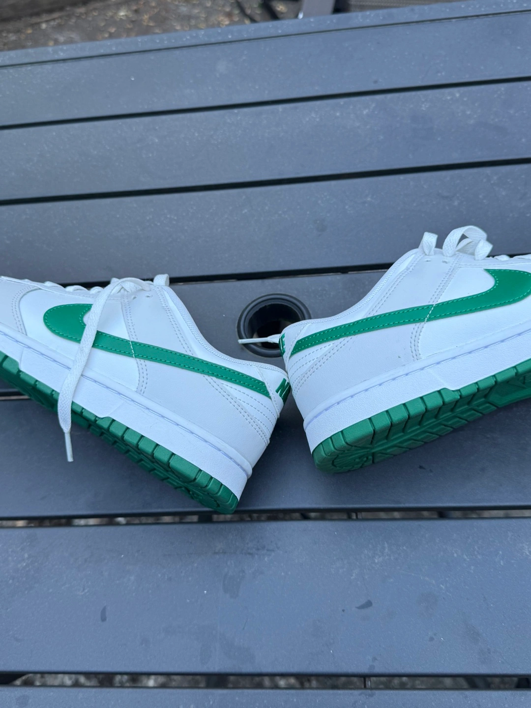Selling a pair of Nike Dunk Lows in a clean white and green colourway! These are in US size 9. The manufacturing date on the tag is 2023 August 31