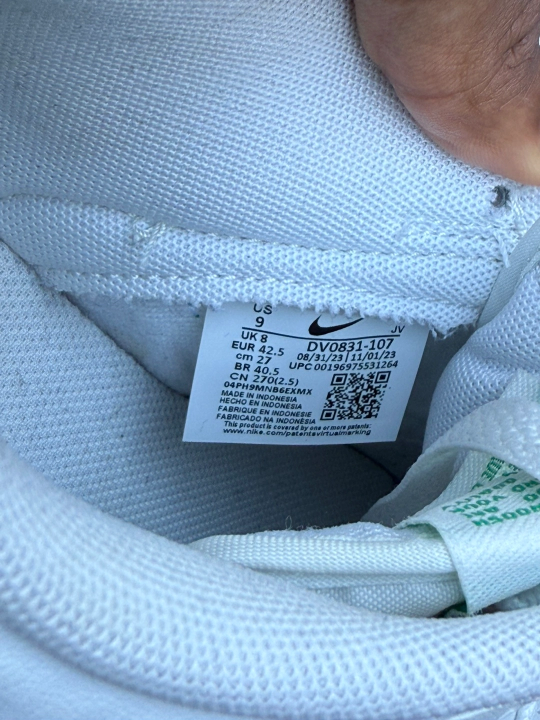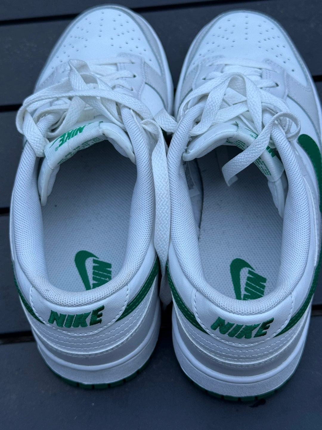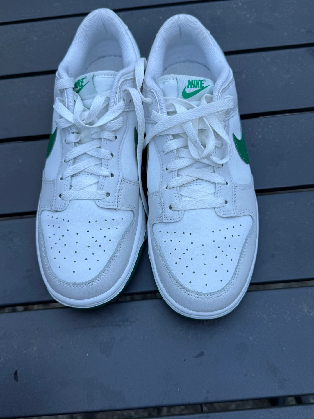 Selling a pair of Nike Dunk Lows in a clean white and green colourway! These are in US size 9. The manufacturing date on the tag is 2023 August 31