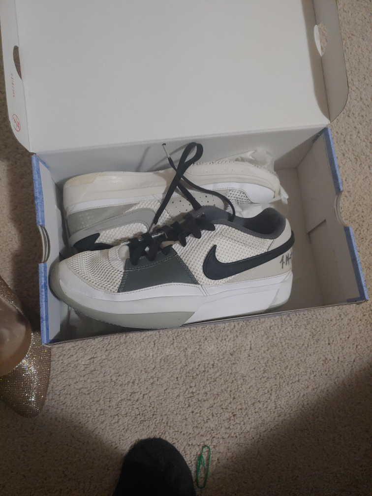 Selling a pair of Nike Ja Morant basketball shoes in white and grey. They come with the original box.