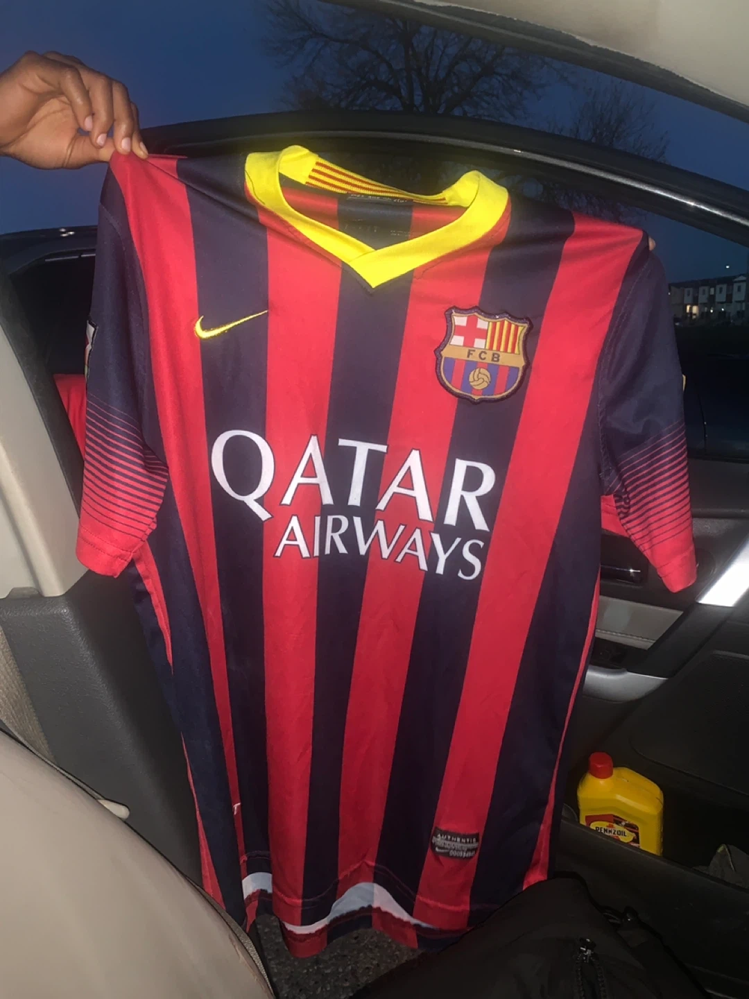 Selling a Nike FC Barcelona jersey with Messi's name and number 10 on the back! The jersey features the Qatar Airways logo on the front and the Unicef logo on the back. It's in great condition and ready for a new fan!