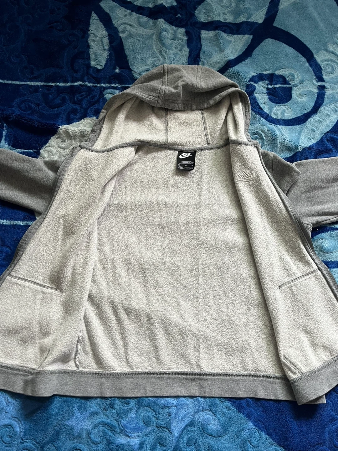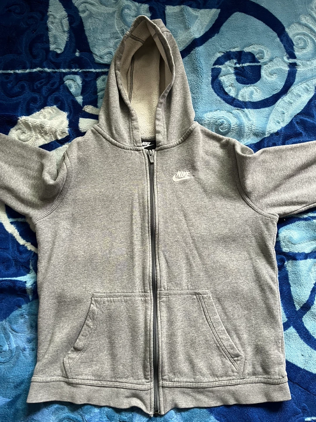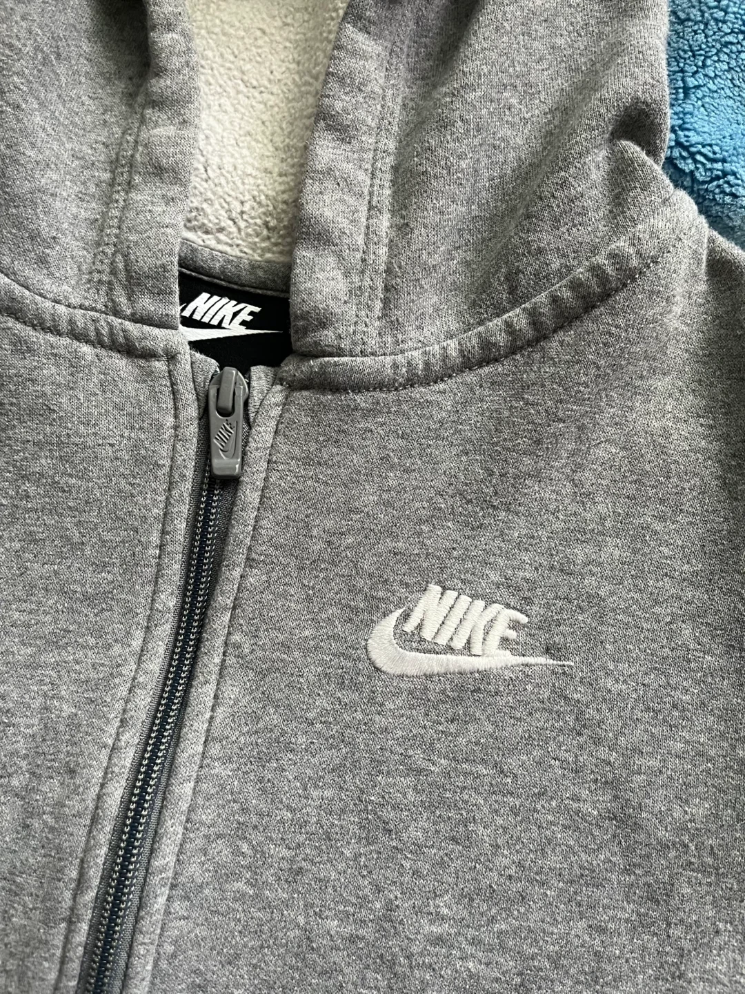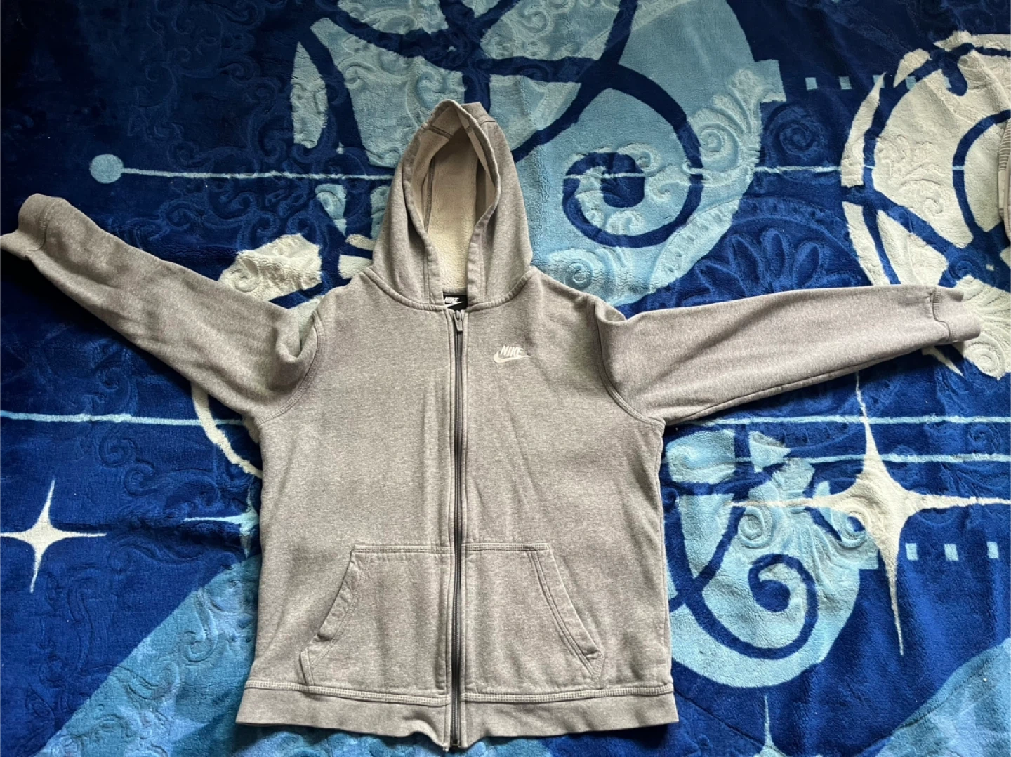 Cozy grey Nike full zip hoodie! Perfect for layering or just lounging around the house. It's in great condition and super comfy. Size XL (Extra Large) in Youth Sizes No fading, no link, perfect inside and outside material.