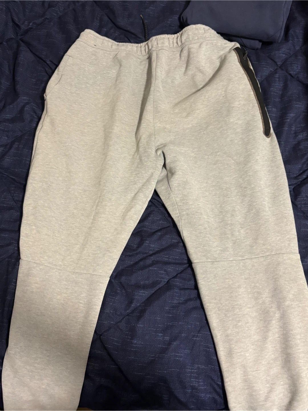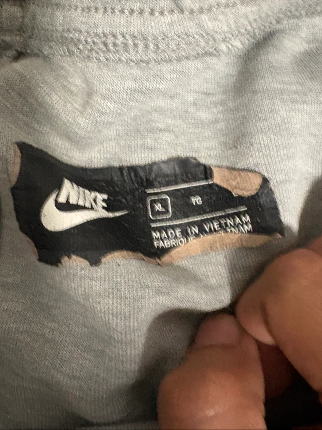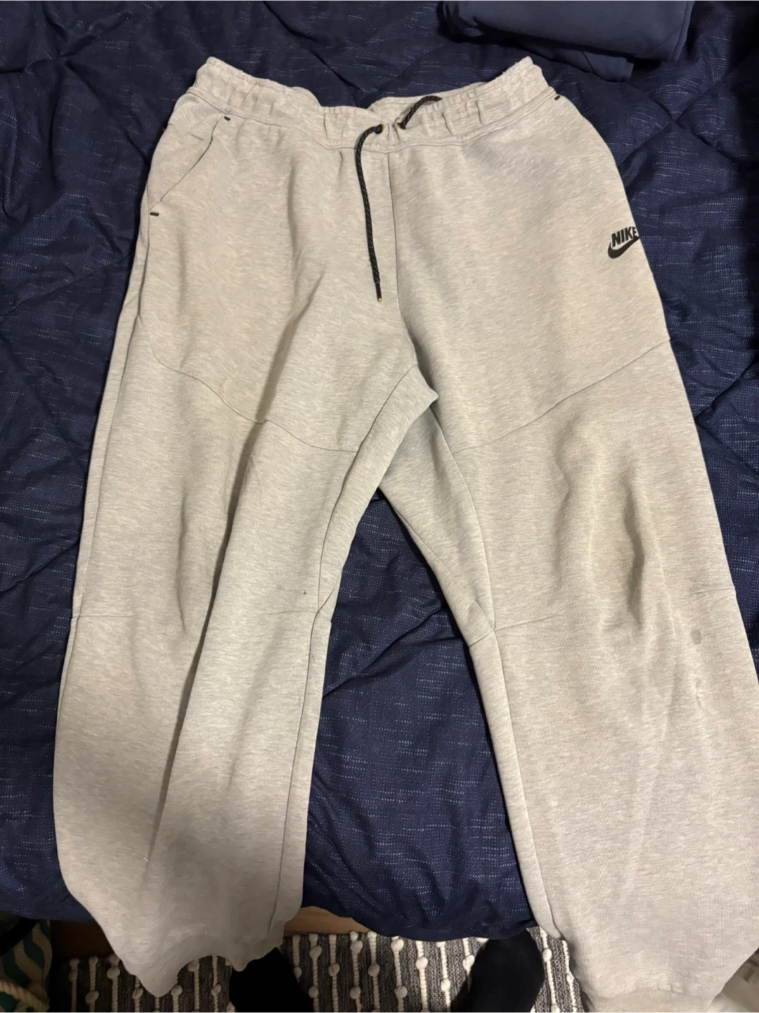 Selling a pair of Nike grey sweatpants in size XL. They're in good condition, perfect for lounging or working out. Please note there are some small spots on the fabric.