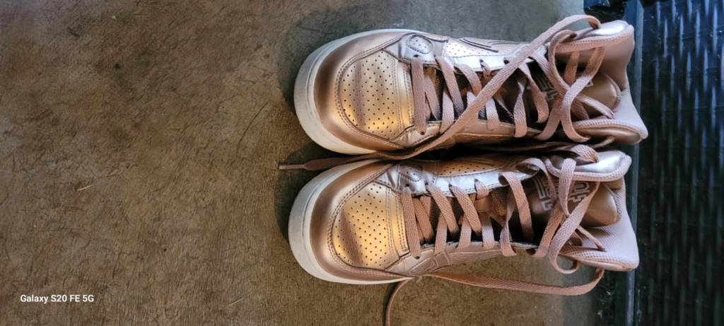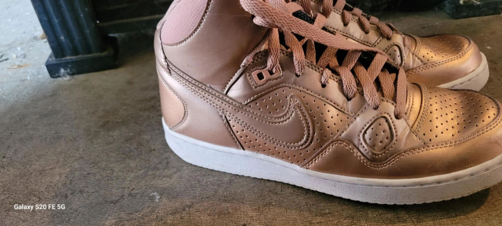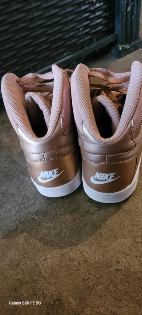Rose gold Nike high top sneakers. These shoes are in great condition and ready for a new home! They feature the classic Nike swoosh and a comfortable fit. Perfect for adding a touch of style to any outfit