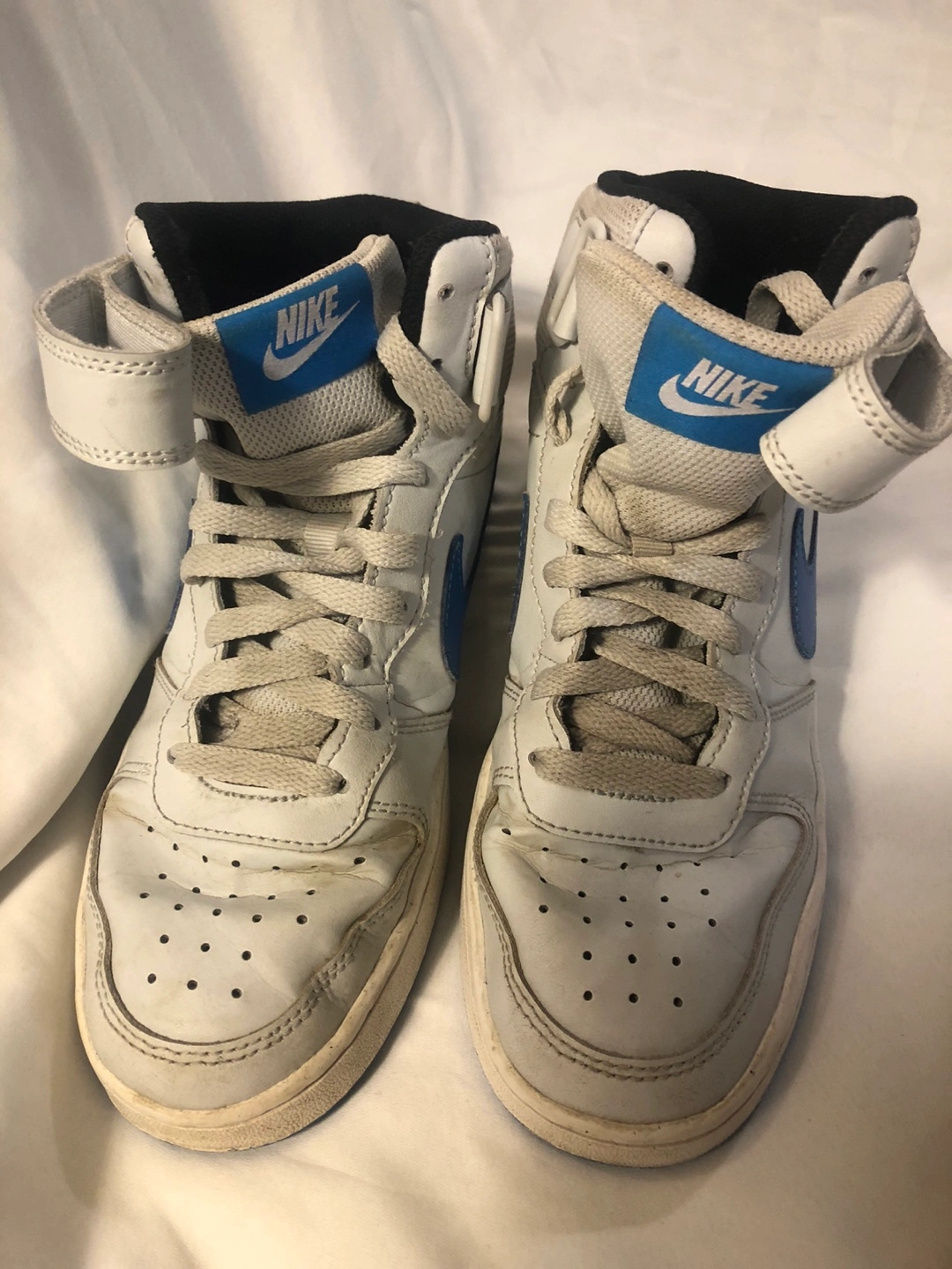 Nike high-top sneakers in good condition. Please take a look at the pictures for condition details. Size is Youth 6.5 Get them now for BACK TO SCHOOL