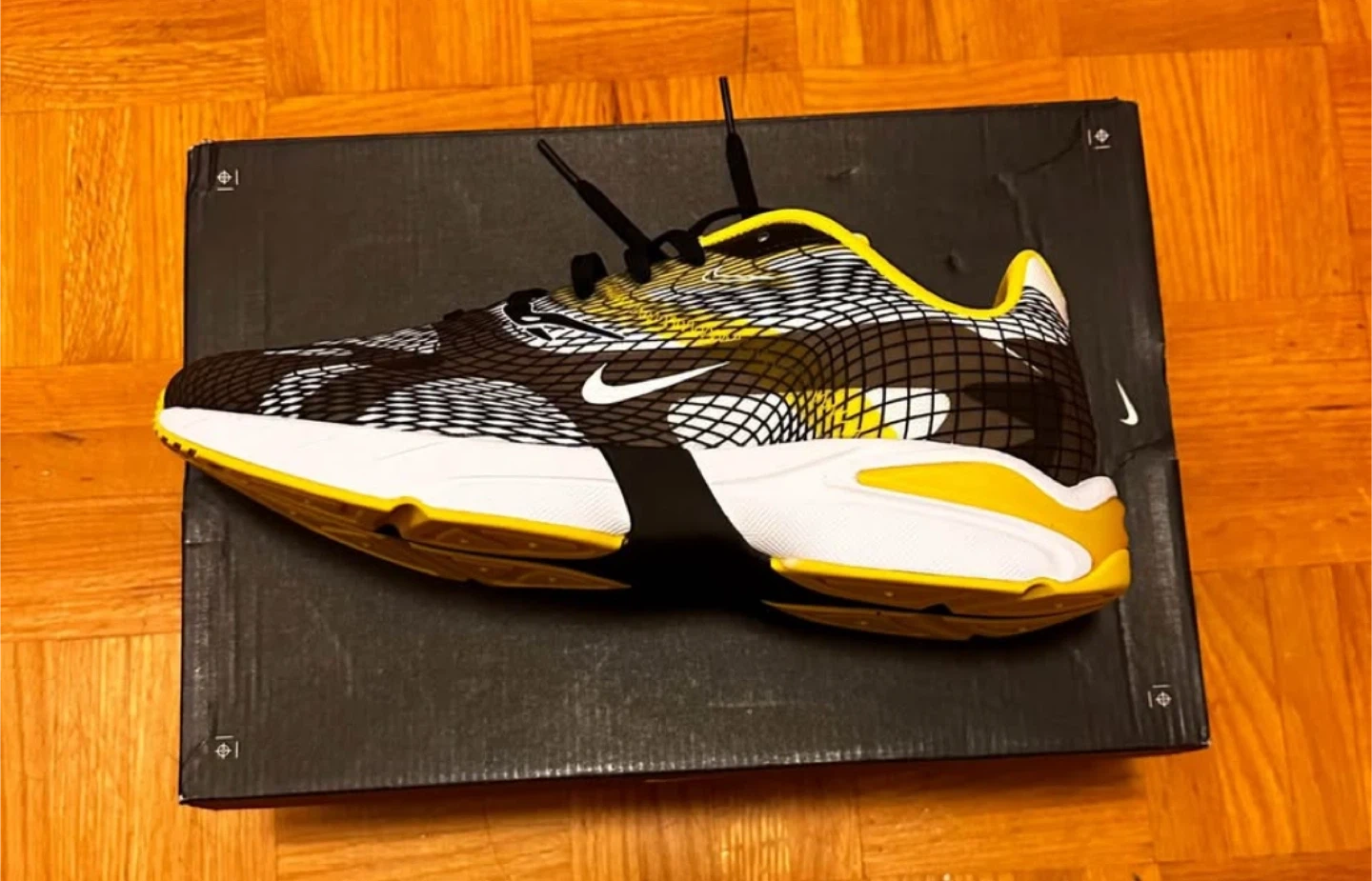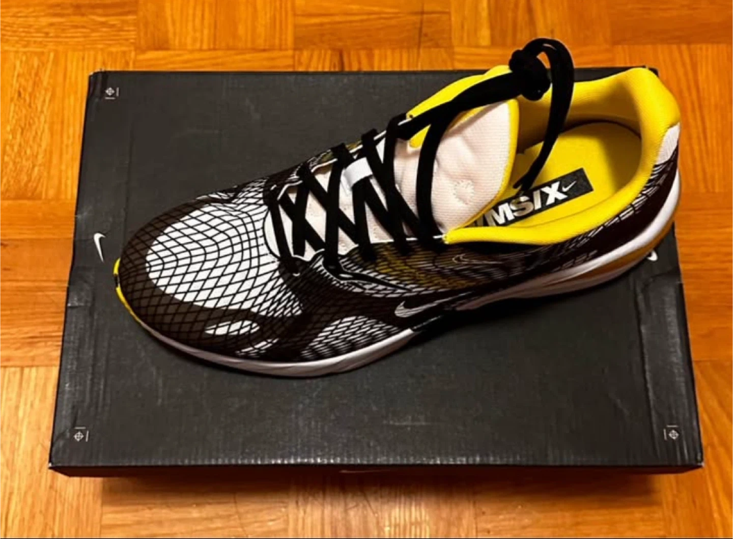 Selling a pair of Nike IMSIX sneakers in US size 11 They come with the original box. The shoes feature a unique black, white, and yellow colour scheme. They're in great shape and ready for a new home!