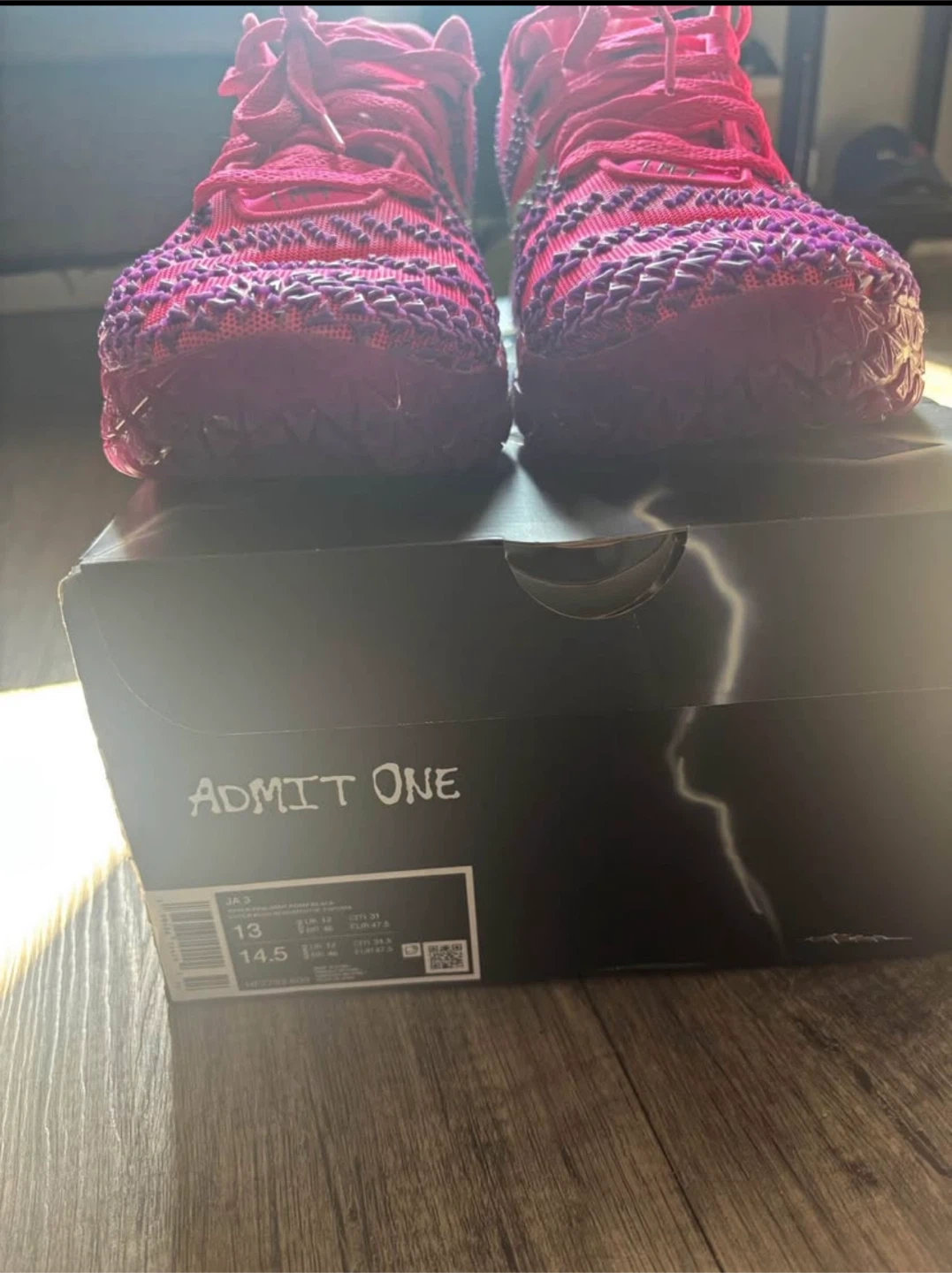 Selling a pair of Nike Ja 3’s Ember Glow' basketball shoes in men's size 13. These shoes come with the original box, which is in great condition. They feature a vibrant pink and purple colour scheme. Worn once for 20 min No damage Ne Whitehorn $150