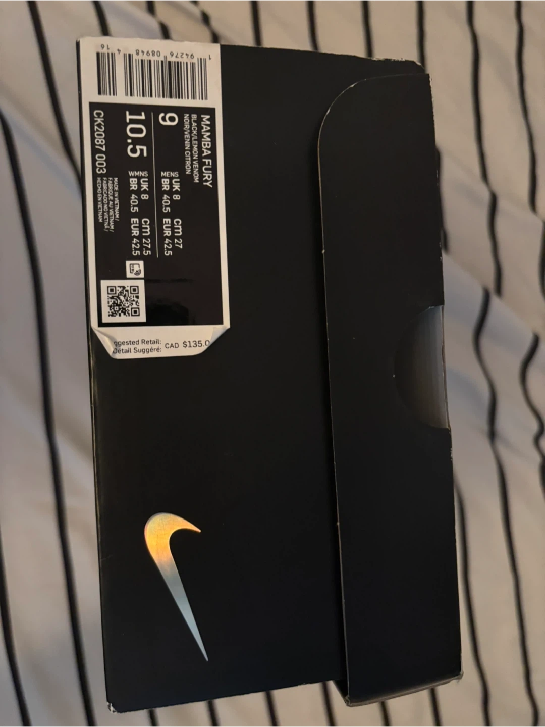 Selling a pair of Nike Mamba Fury basketball shoes in black, lemon, and violet. They are a US size 10.5. Comes with the original box! Used once or twice