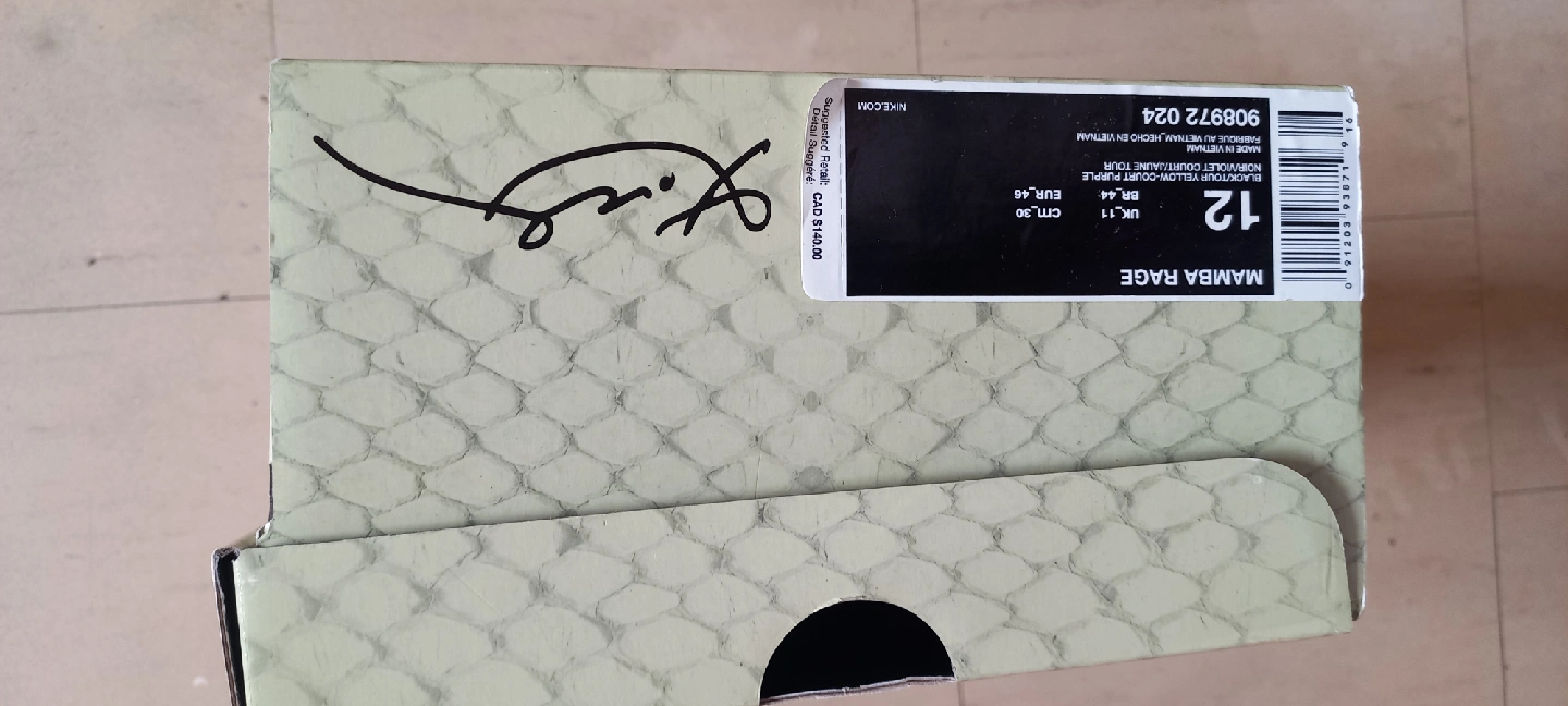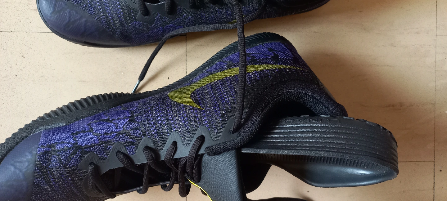 Selling a pair of Nike Kobe Mamba Rage basketball shoes in US size 12. They come with the original box and an insert. The shoes are a cool violet colour with yellow detailing. Great for playing ball or just rocking a stylish look!