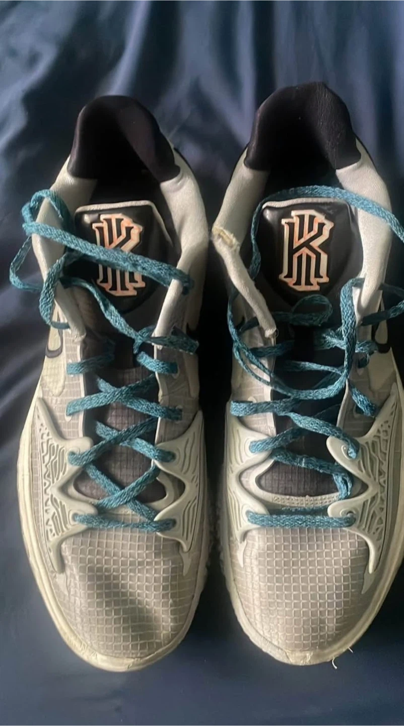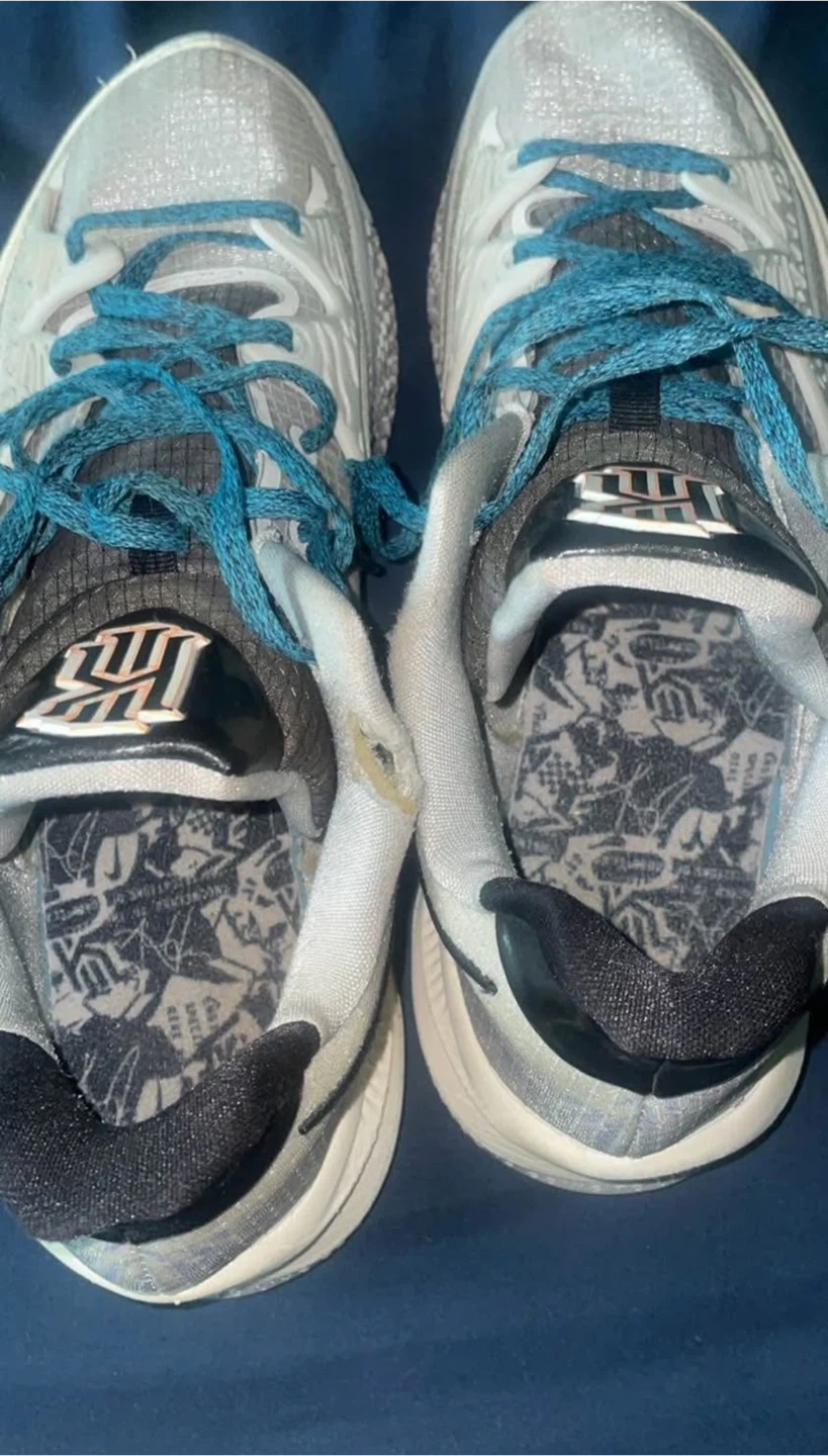 Selling a pair of Nike Kyrie 7 basketball shoes. They show some signs of wear and tear, as you can see in the photos. Great for playing ball or casual wear!